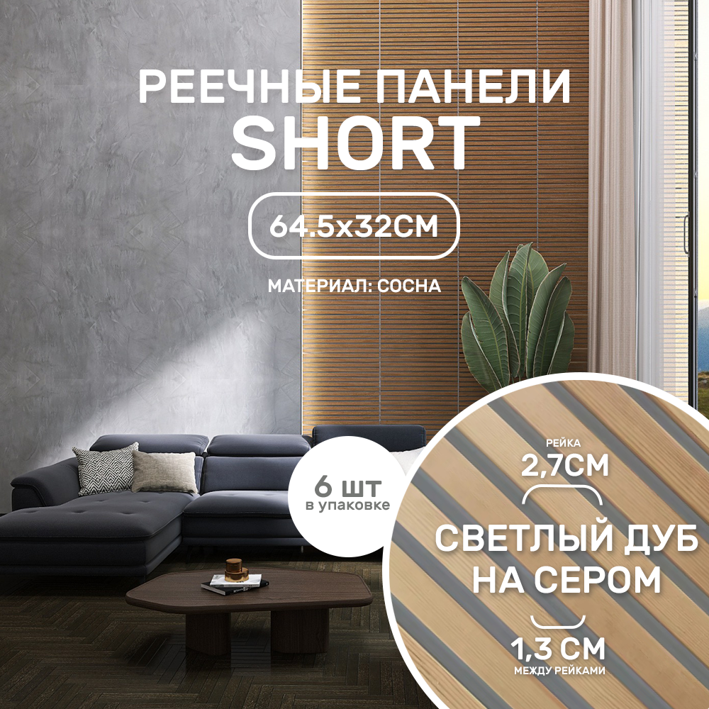 СохранитьДекоративная реечная панель на стену, 6 шт/уп, Светлый дуб на сером, 64,5x32x1,3 см, 1 уп интересное: