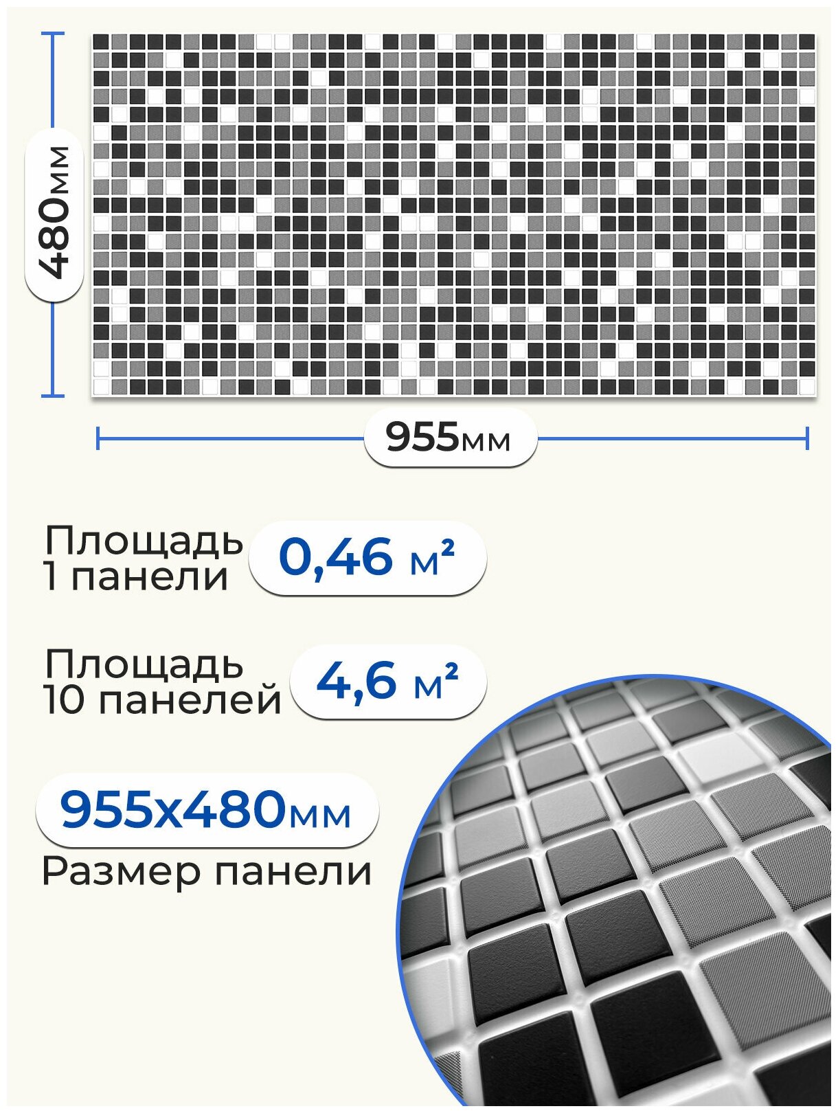 Стеновая панель "Мозаика черная" 3д 960х480 мм декор влагостойкий в ванную, на кухню из ПВХ плитки износостойкие объемные 10 шт. интересное: