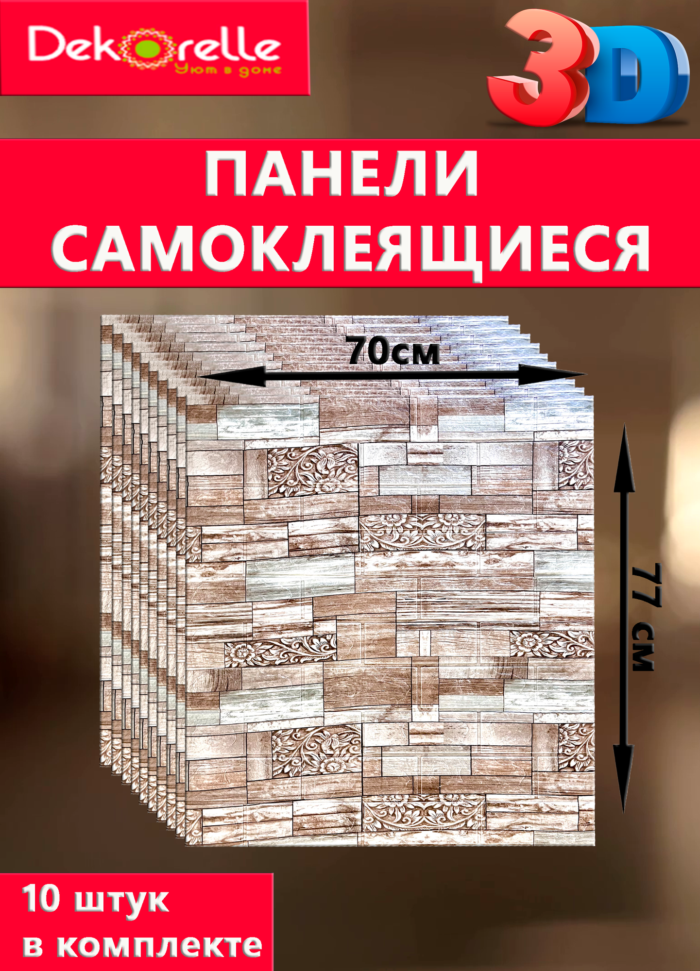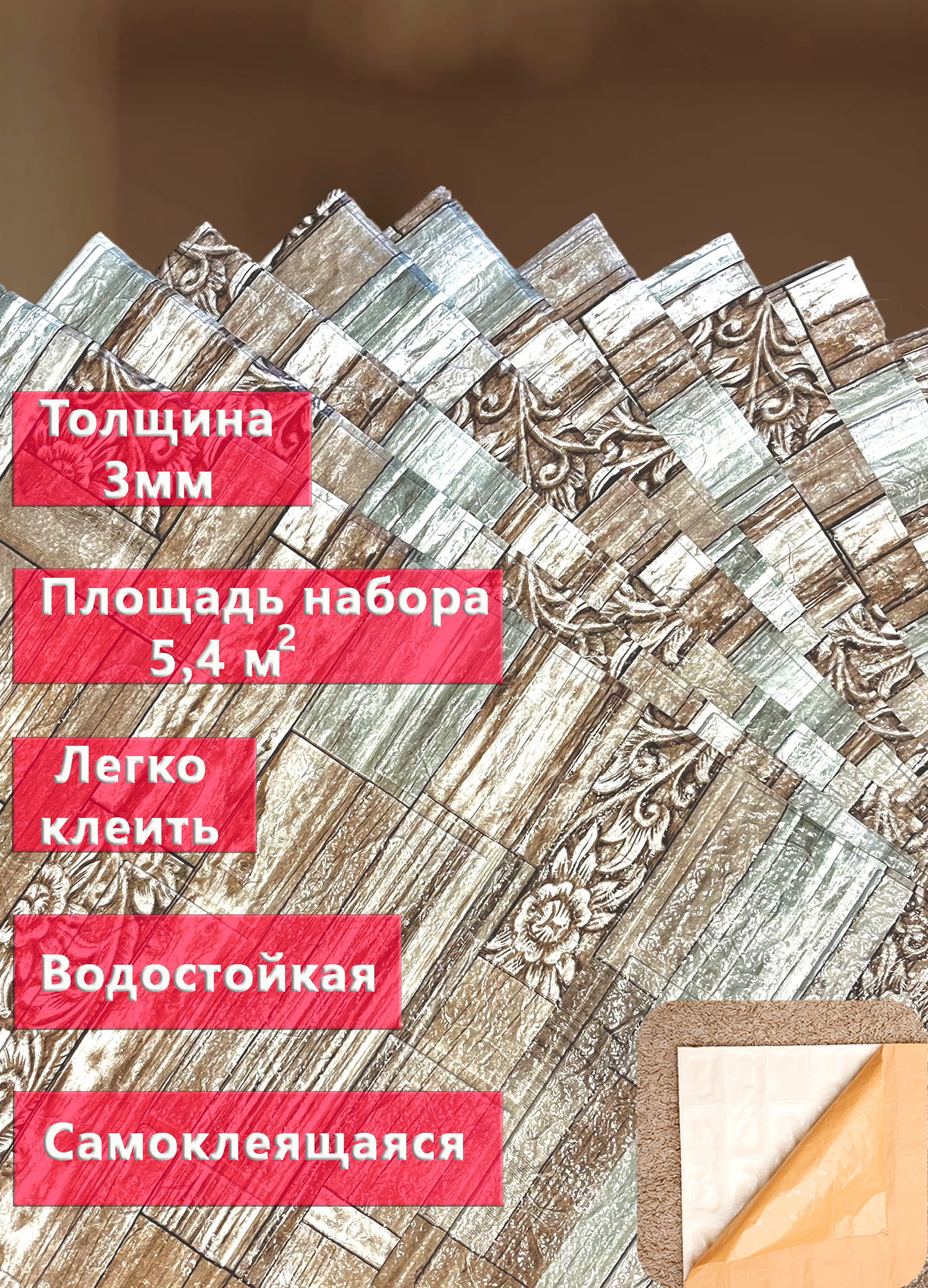 | Подробная комплектация | Самоклеящиеся панели на стену - 10 штук |