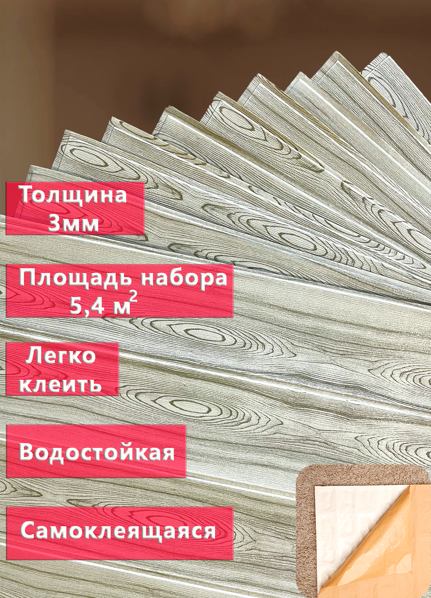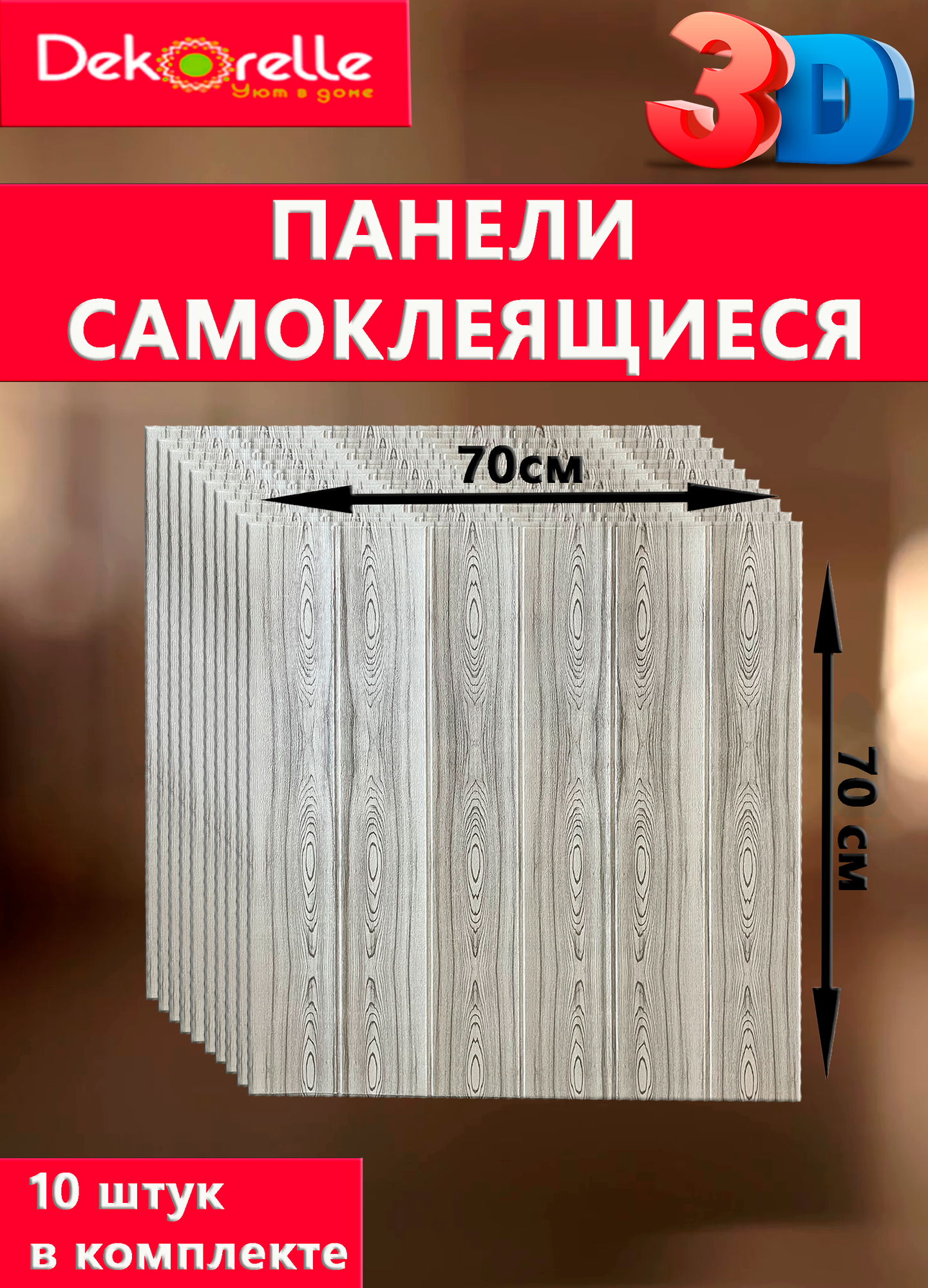 | Подробная комплектация | Самоклеящиеся панели на стену - 10 штук |