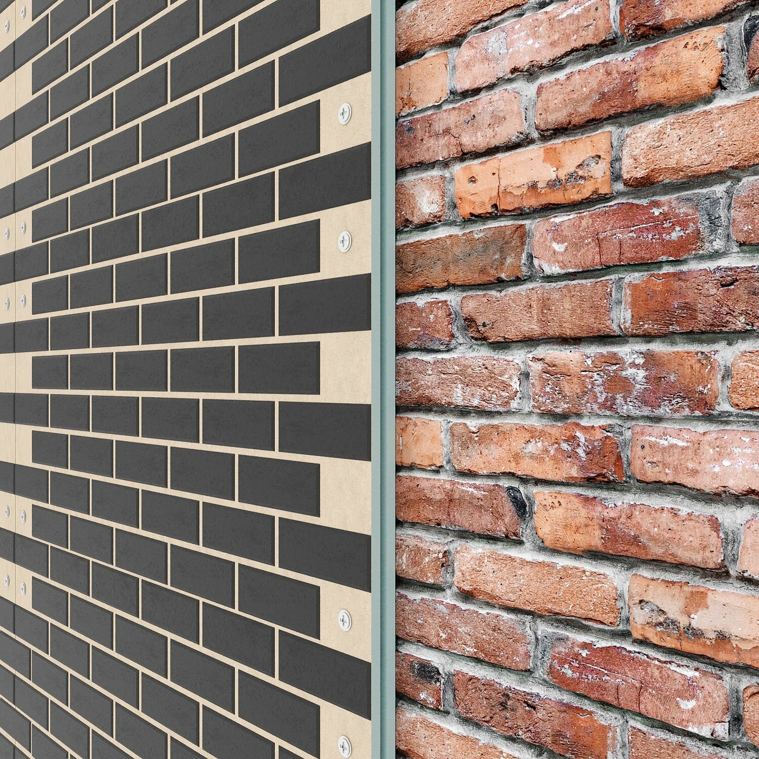 Фасадная панель TEPLOFOM с финишной отделкой цвет "Красный" подложка "Черный" 1250x600x30мм