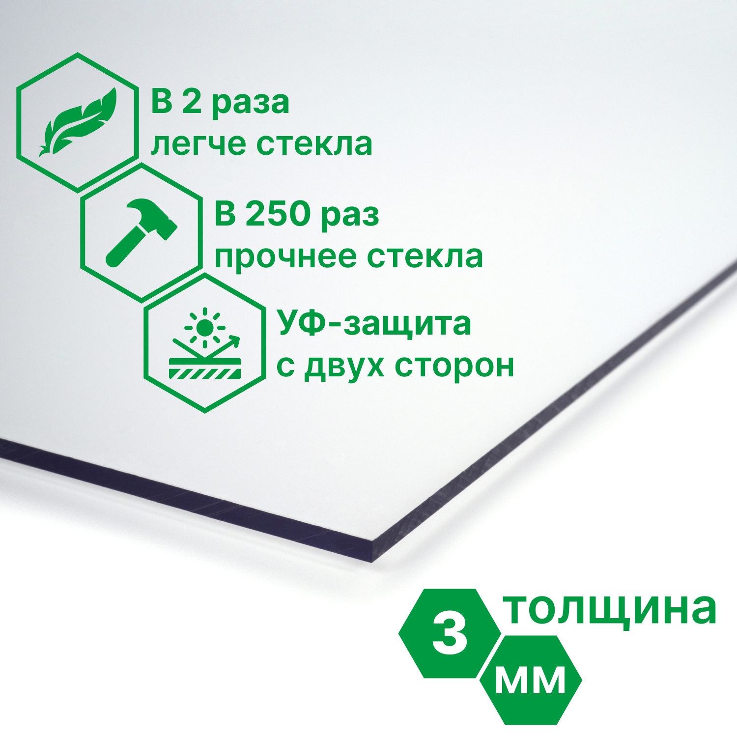 Купить Монолитный поликарбонат 3мм, 1025x750мм, прозрачный