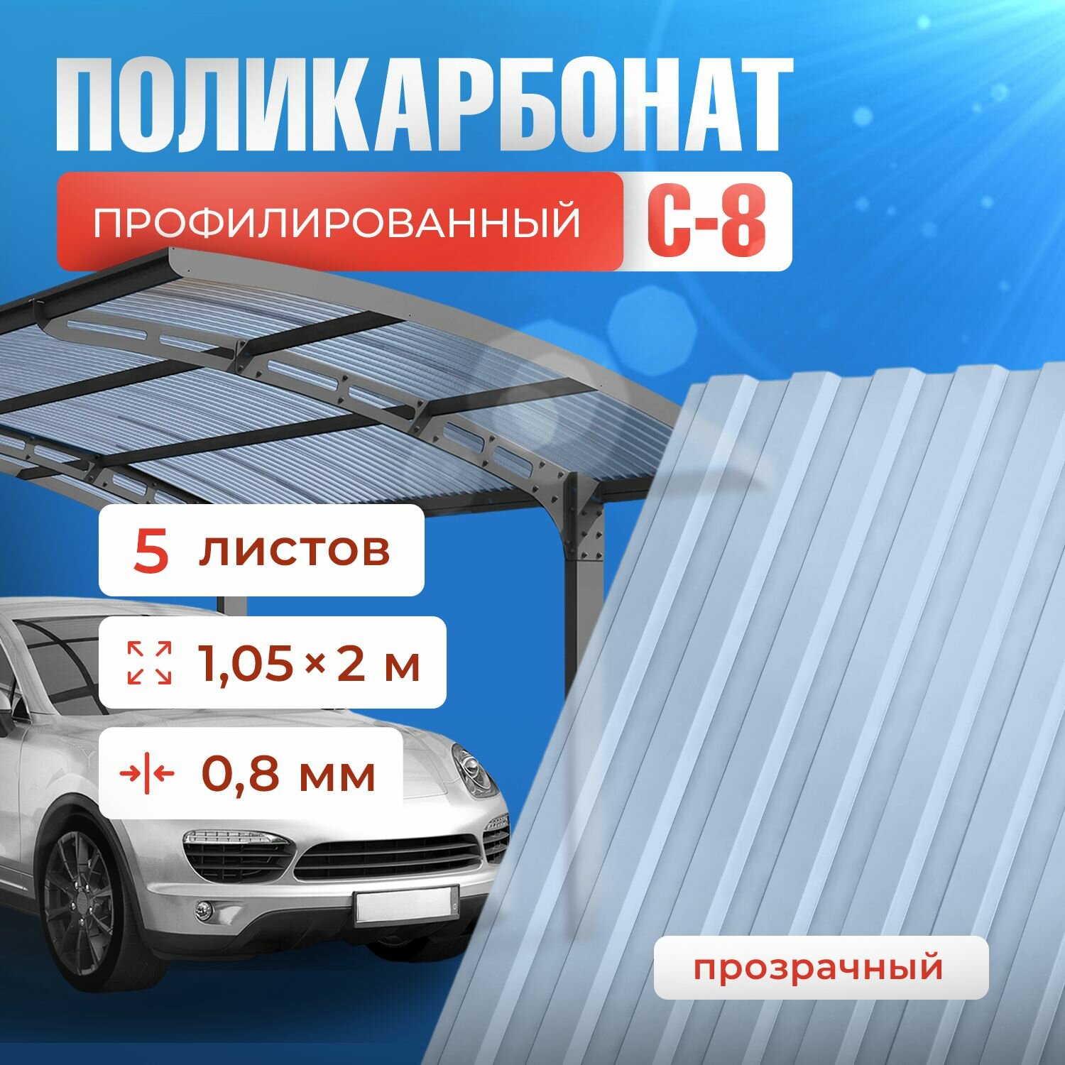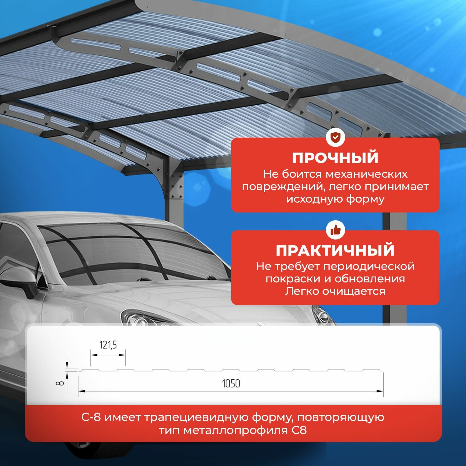 Профилированный поликарбонат С-8 - профнастил прозрачный. Цвет бесцветный толщина 0.8мм размер 1,05*2м - 5 листов интересное: