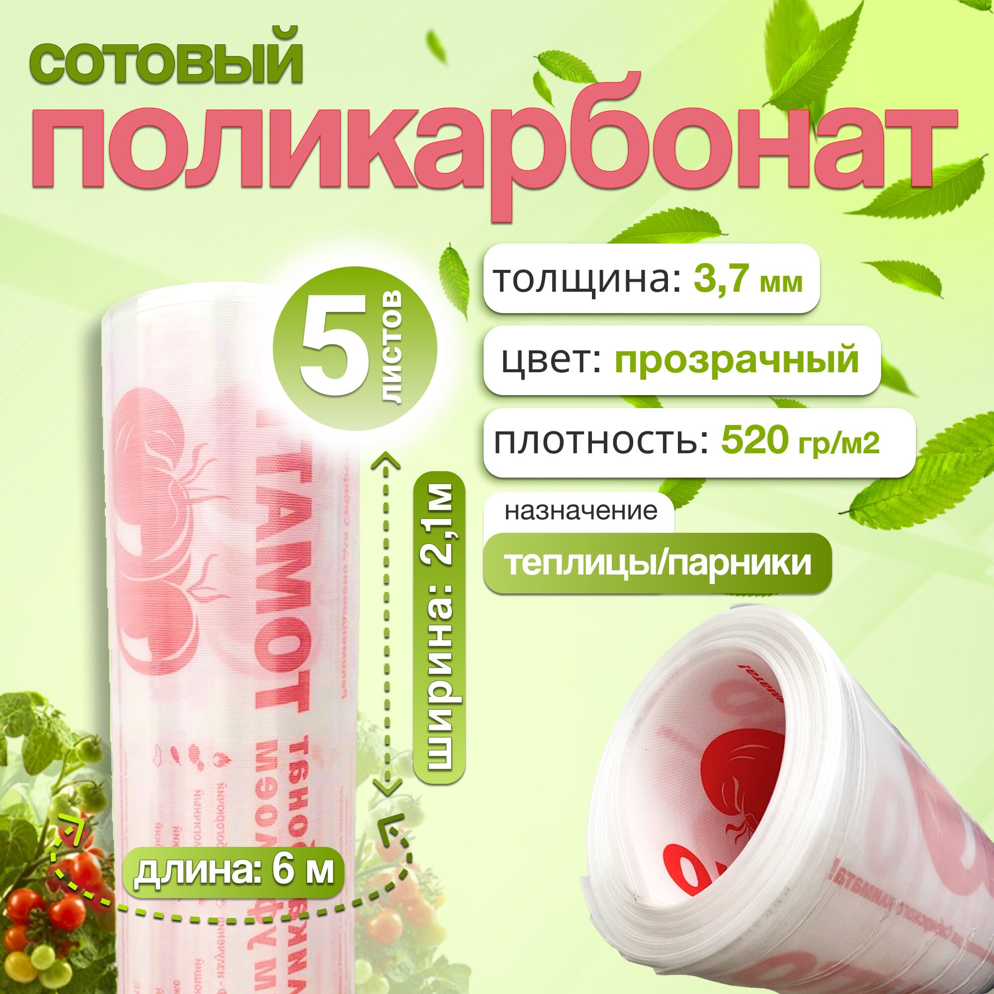 5 листов. Сотовый поликарбонат ТМК прозрачный "Томатто", 3,7 мм. Размер листа 6000х2100 мм интересное: