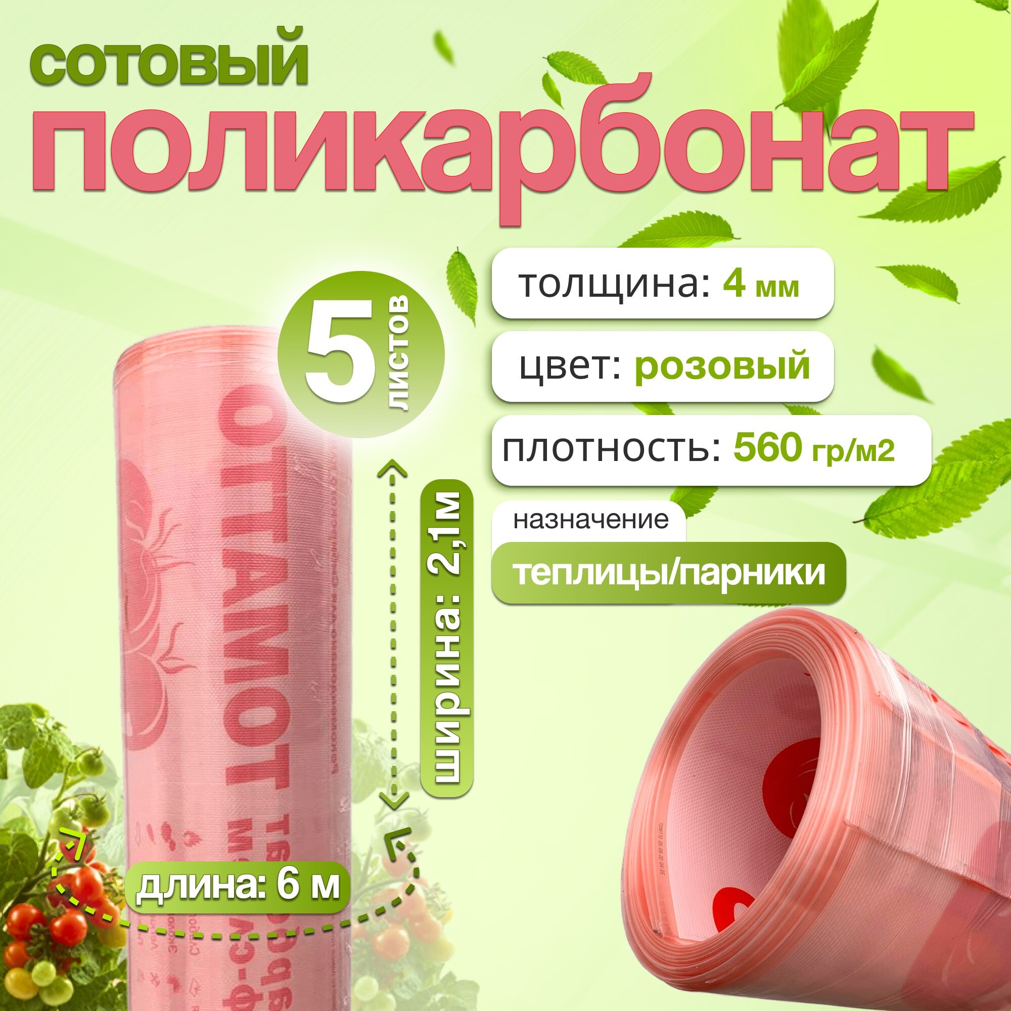 5 листов. Сотовый поликарбонат ТМК NANO розовый "Томатто", 4 мм. Размер листа 6000х2100 мм интересное: