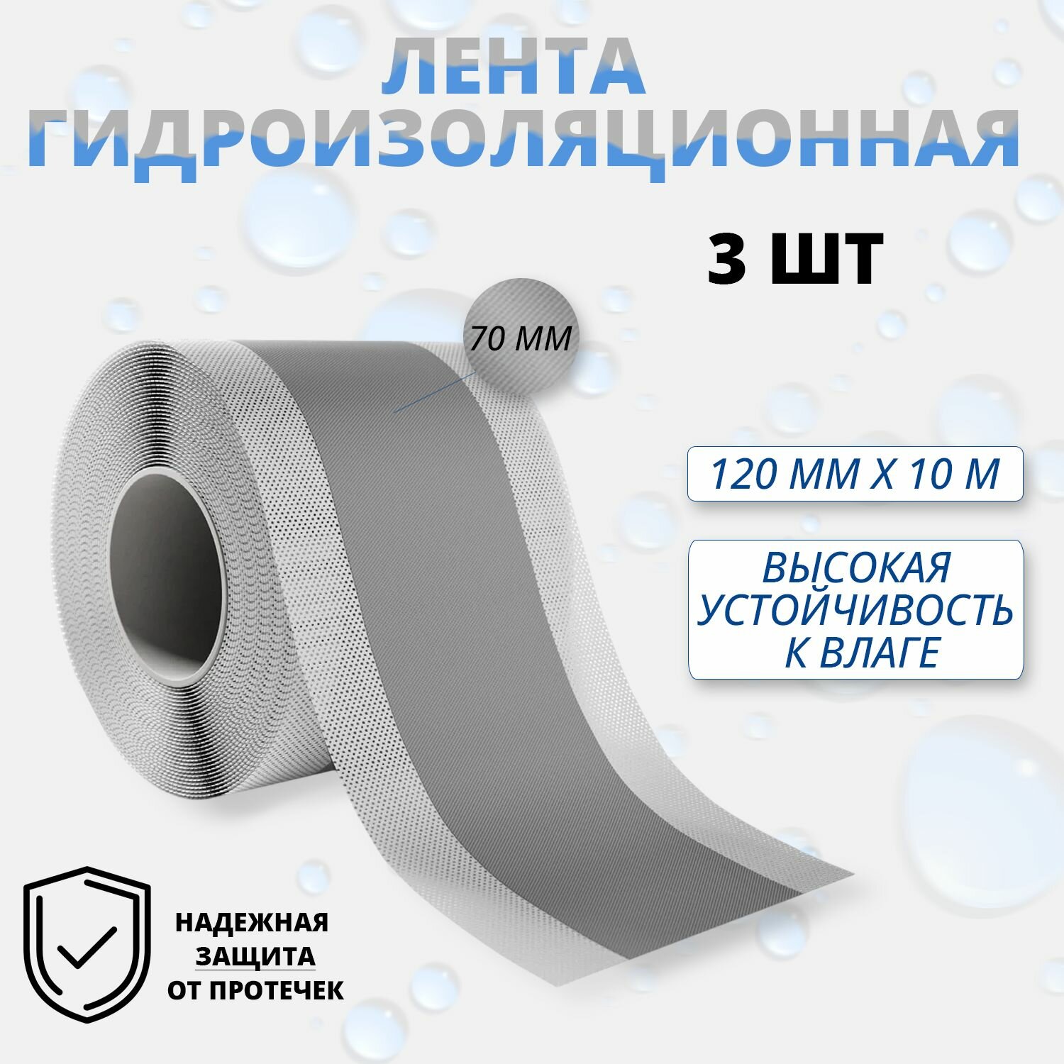 Лента гидроизоляционная 120мм/70мм х 10м, 3 шт HOWARD