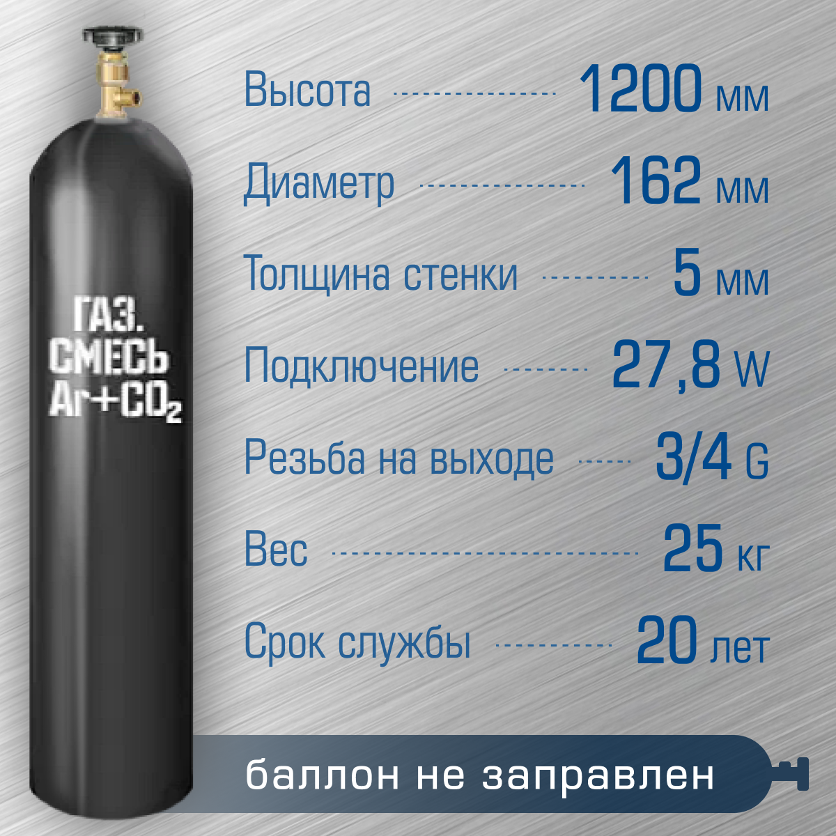 Баллон газовый сварочная смесь 20 л бесшовный ЯрпожИнвест, пустой