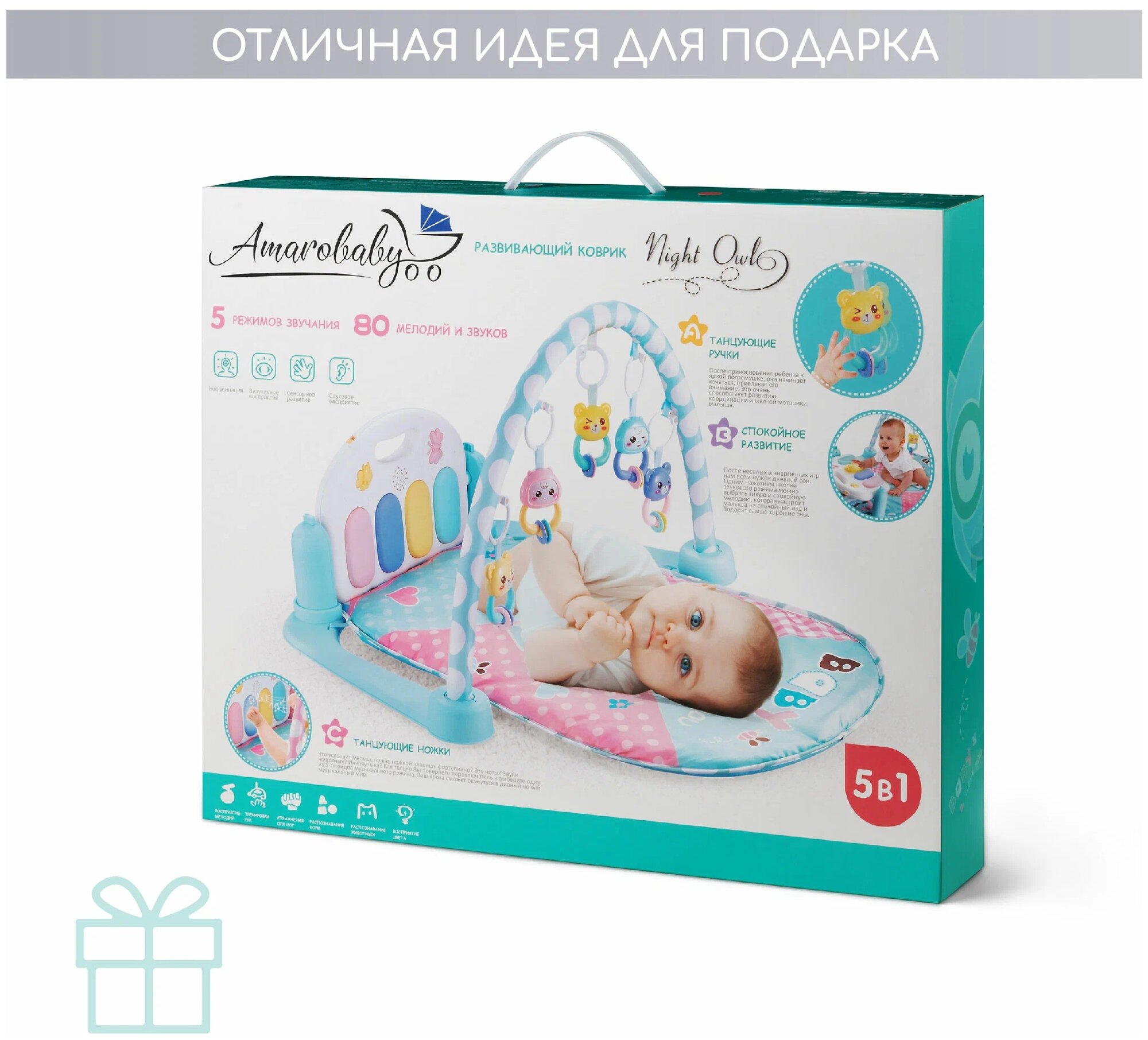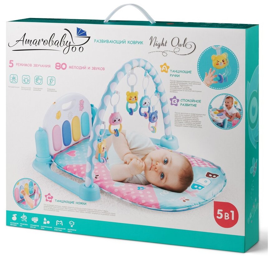 Коврик развивающий Amarobaby NIGHT OWL 80x65x45 (сова) мятный AMARO-8001-NO интересное: