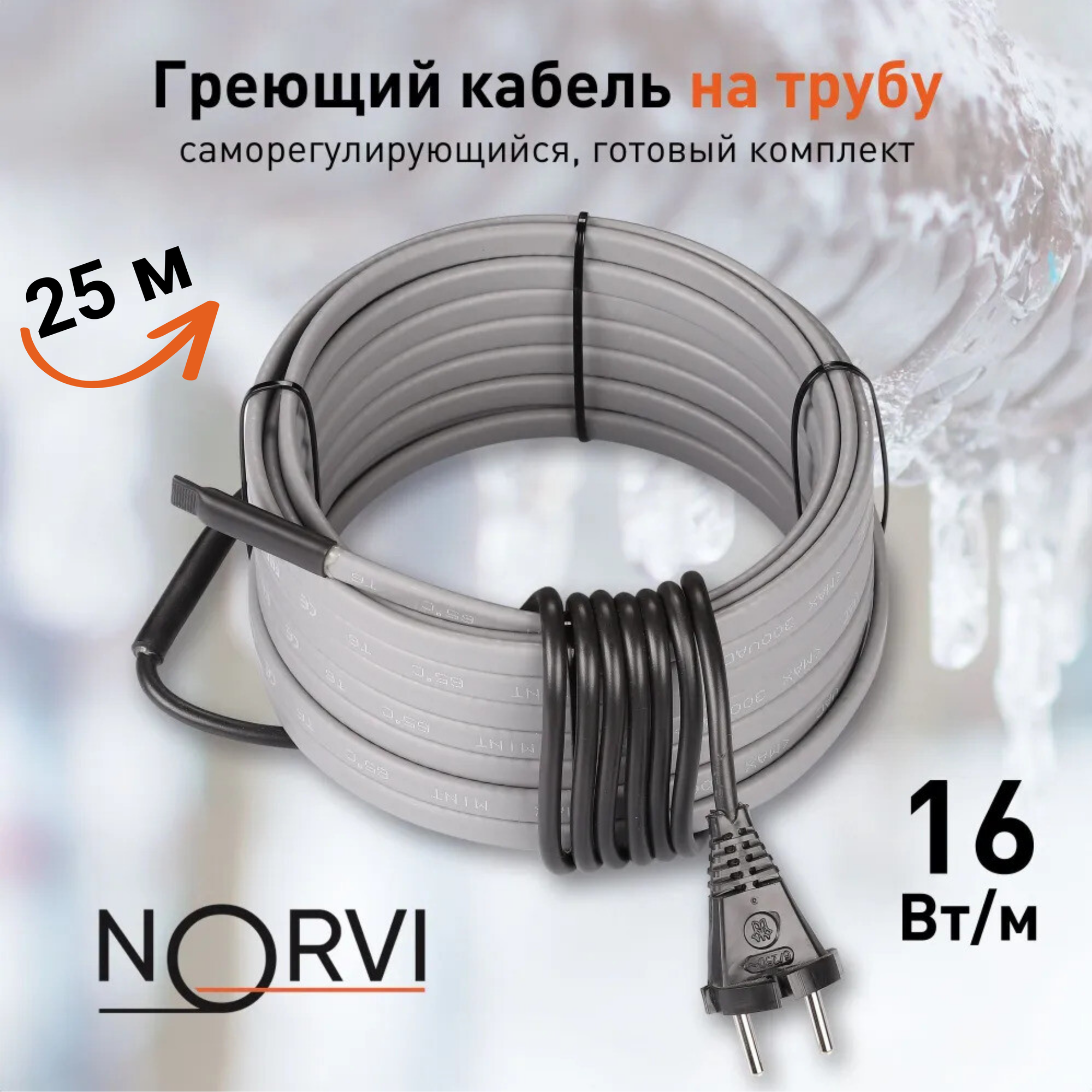 Греющий кабель NORVI ONPIPE, 16 Вт, 1 м, для обогрева труб снаружи