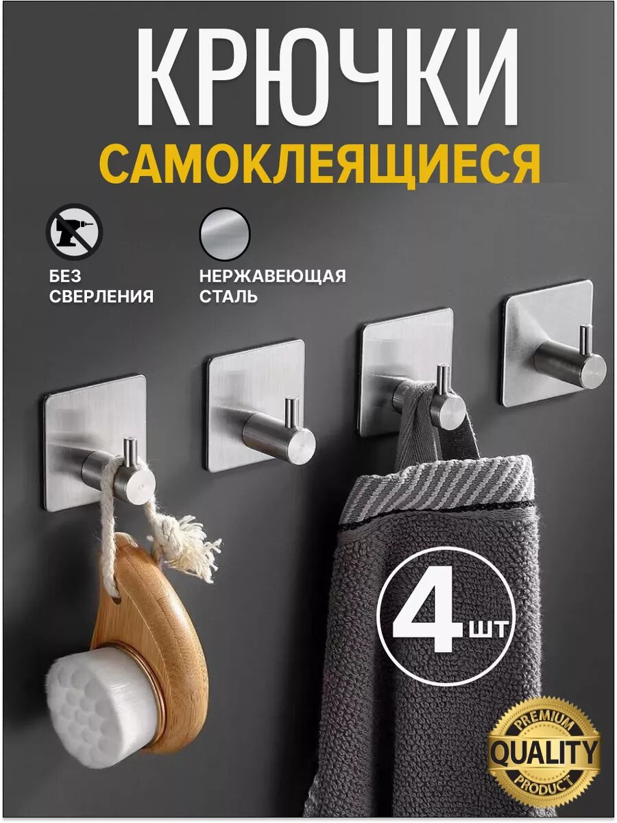 Самоклеящиеся Крючки для Ванной и Кухни, 4 штуки интересное: