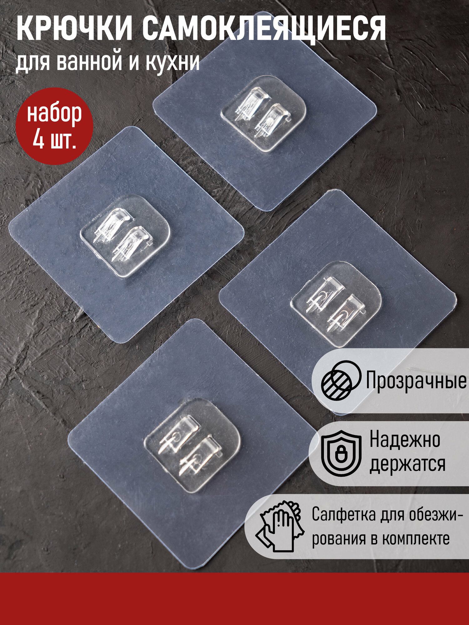 | Комплектация | крючки самоклеящиеся - 4 шт; спиртовая салфетка - 1 шт |