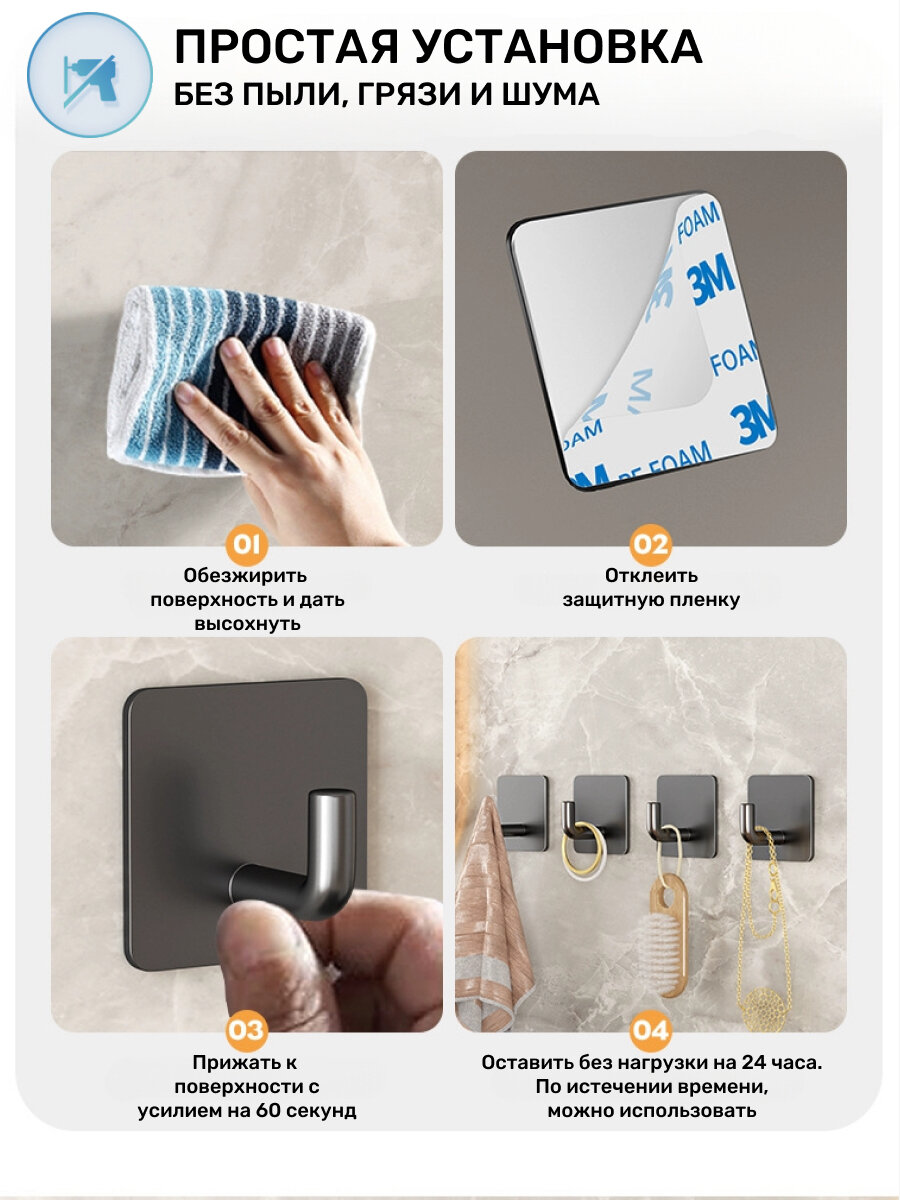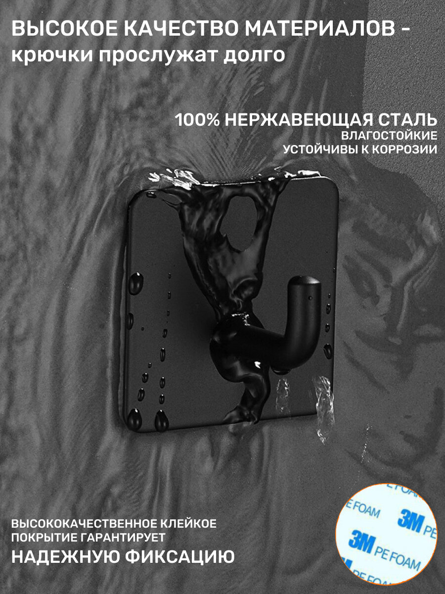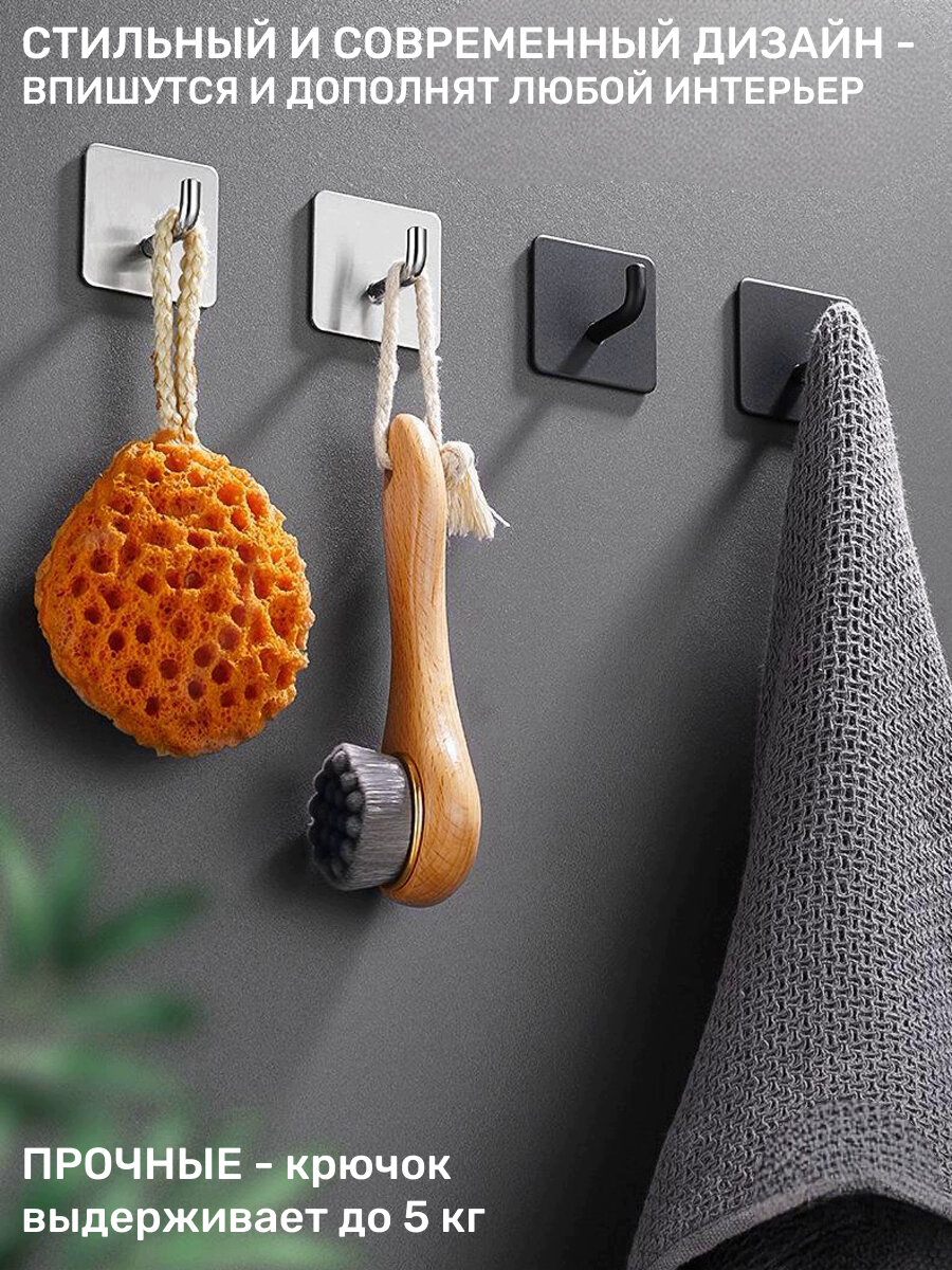 Крючки самоклеющиеся для ванной комнаты 4 шт, цвет черный интересное: