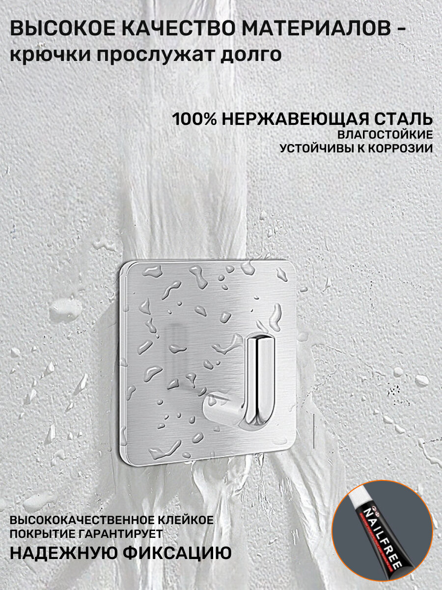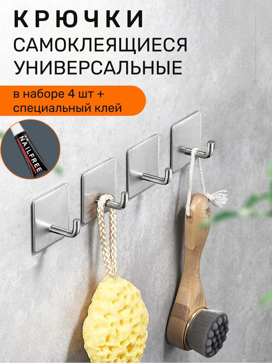 Крючки самоклеющиеся для ванной комнаты 4 шт, цвет серебро интересное: