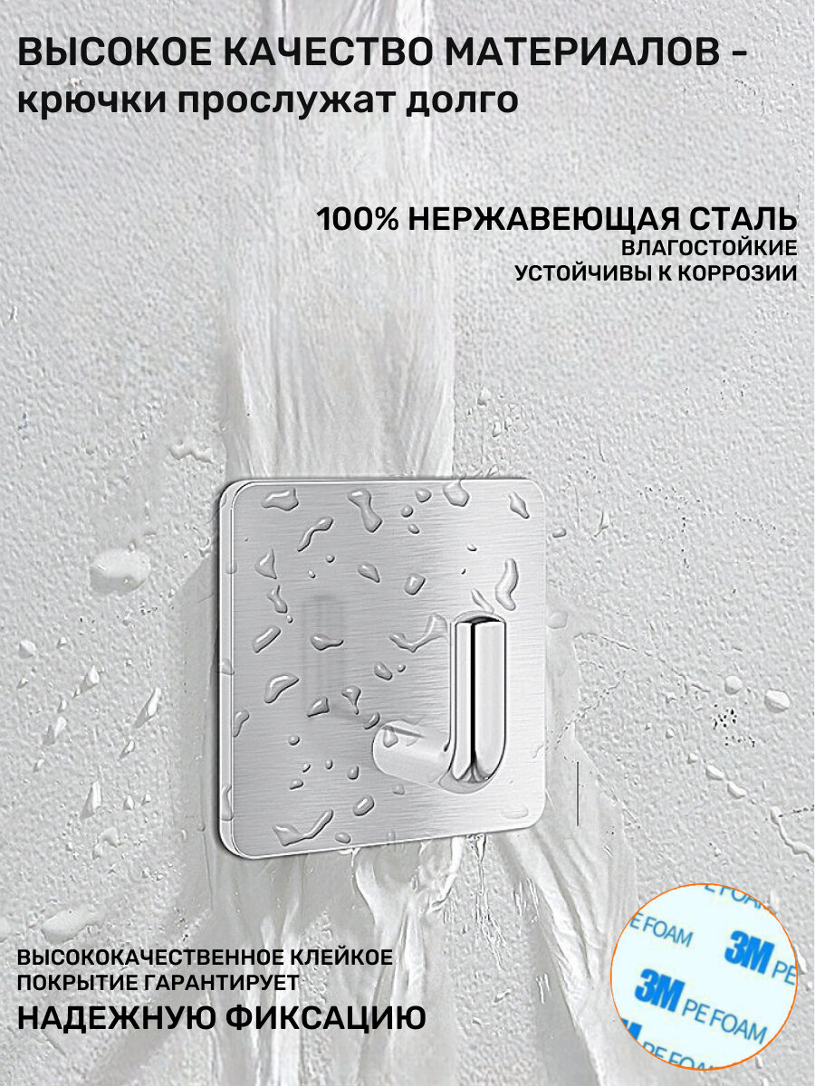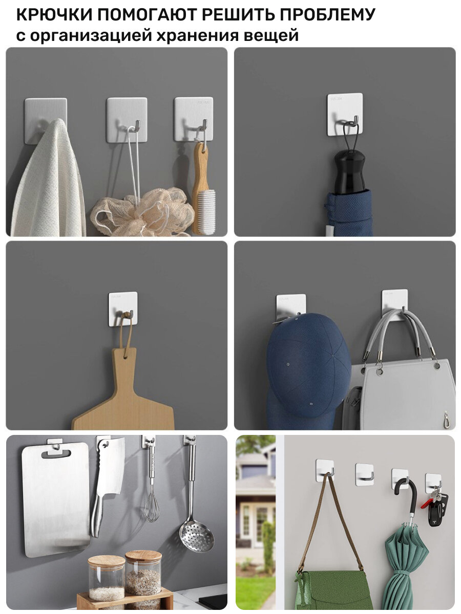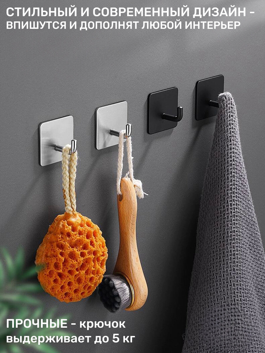 Крючки самоклеющиеся для ванной комнаты 4 шт, цвет серебристый интересное: