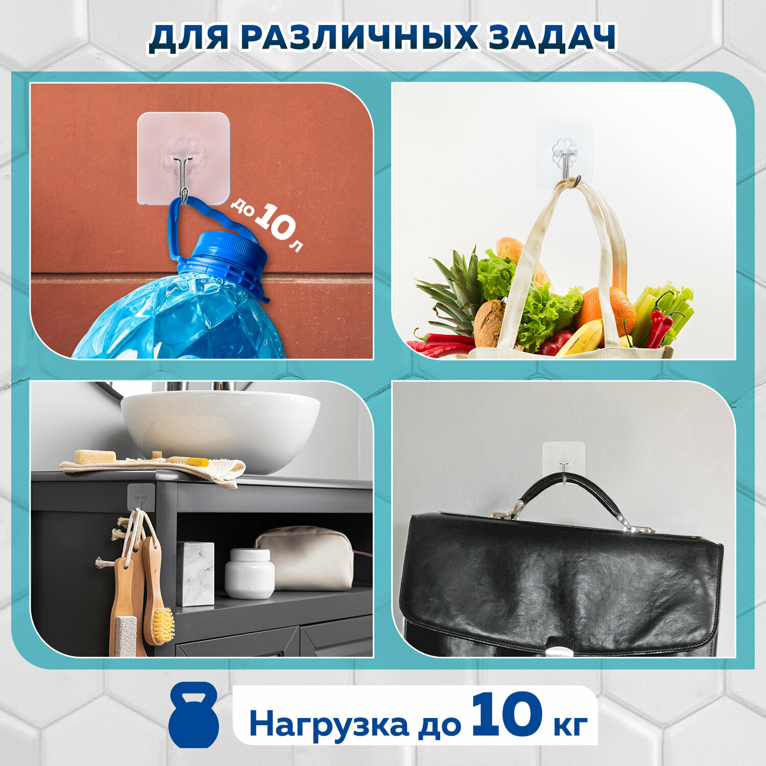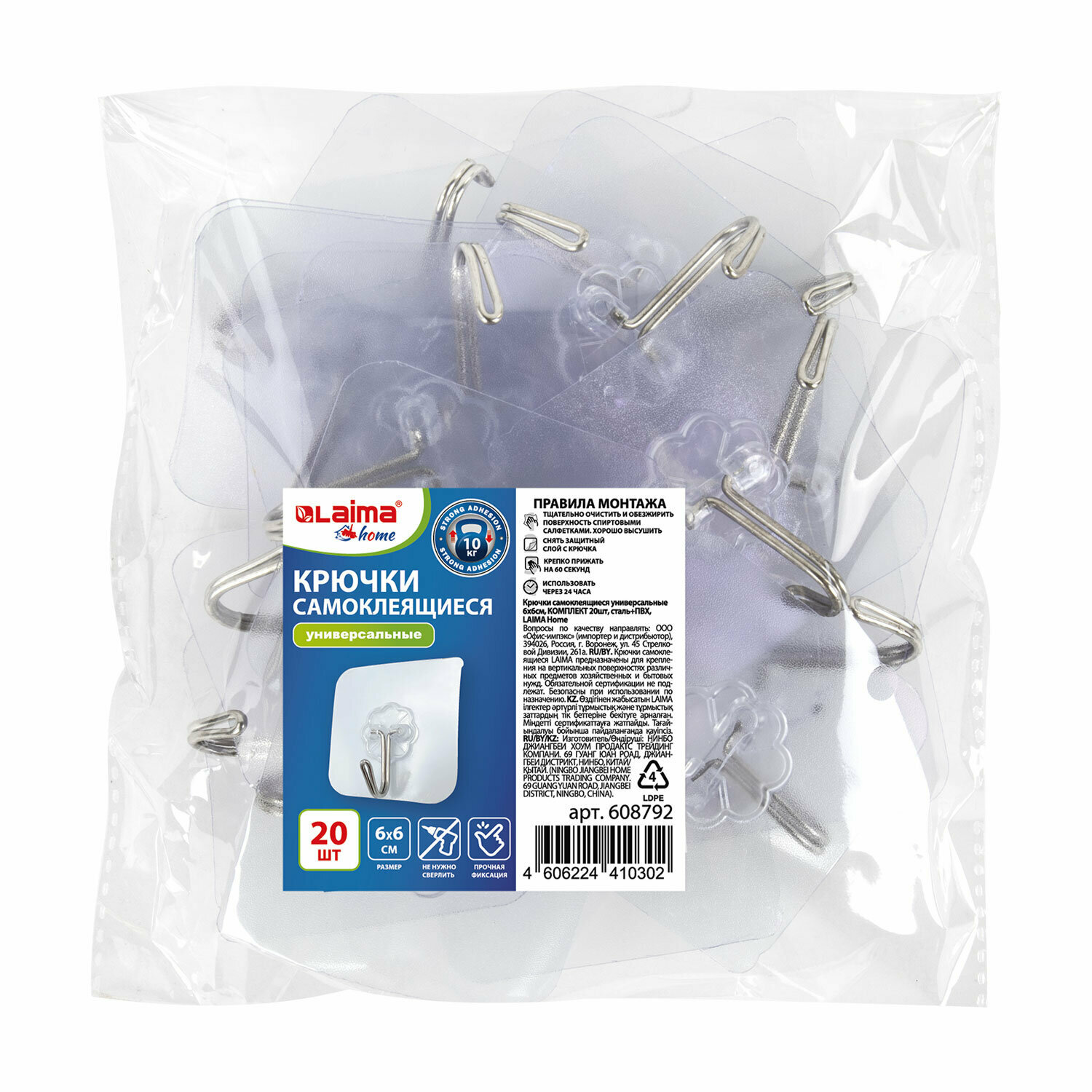 Крючки самоклеящиеся для ванной, кухни универсальные 6х6 см, 20 штук, сталь/ПВХ, Laima Home, 608792 интересное: