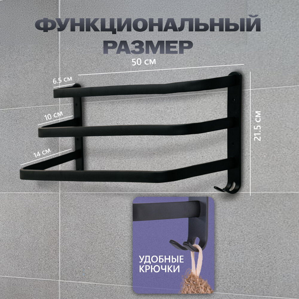 Держатель для полотенец в ванную, 3 уровня, черный интересное: