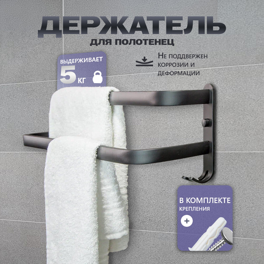 Держатель для полотенец в ванную, 2 уровня, черный интересное: