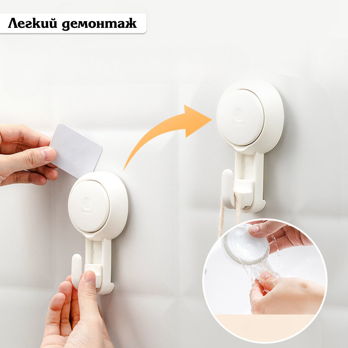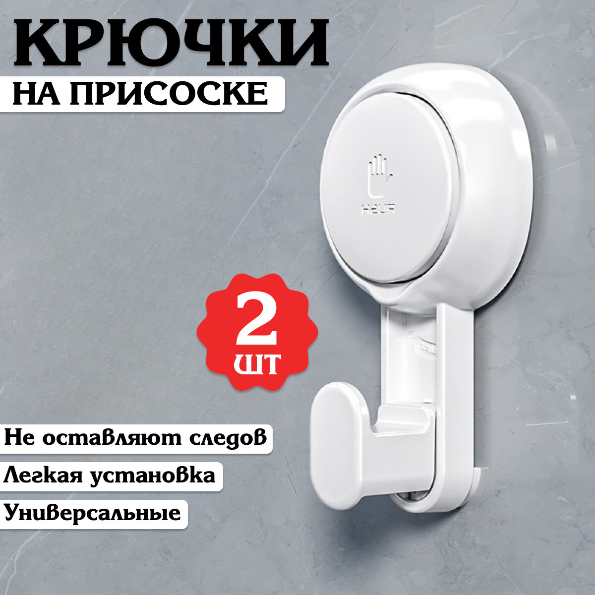 Крючки настенные для ванной без сверления на присосках , 2 шт / KRImarket интересное: