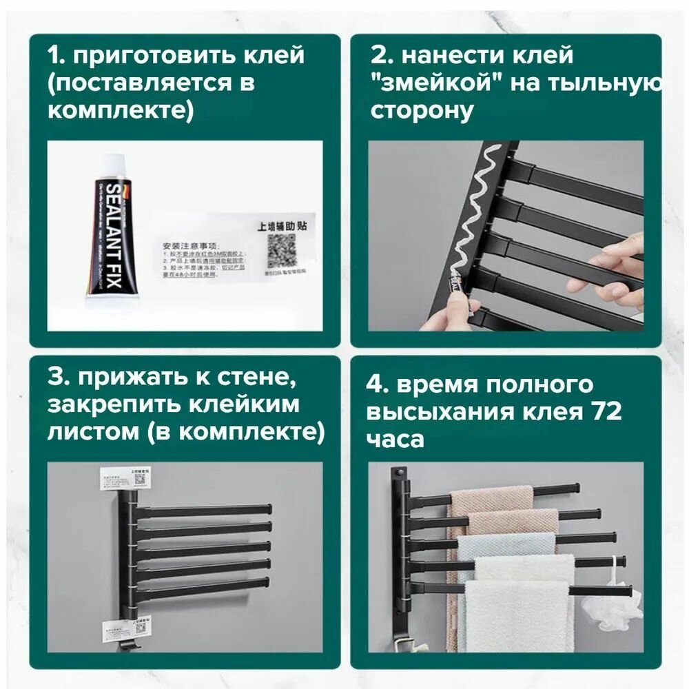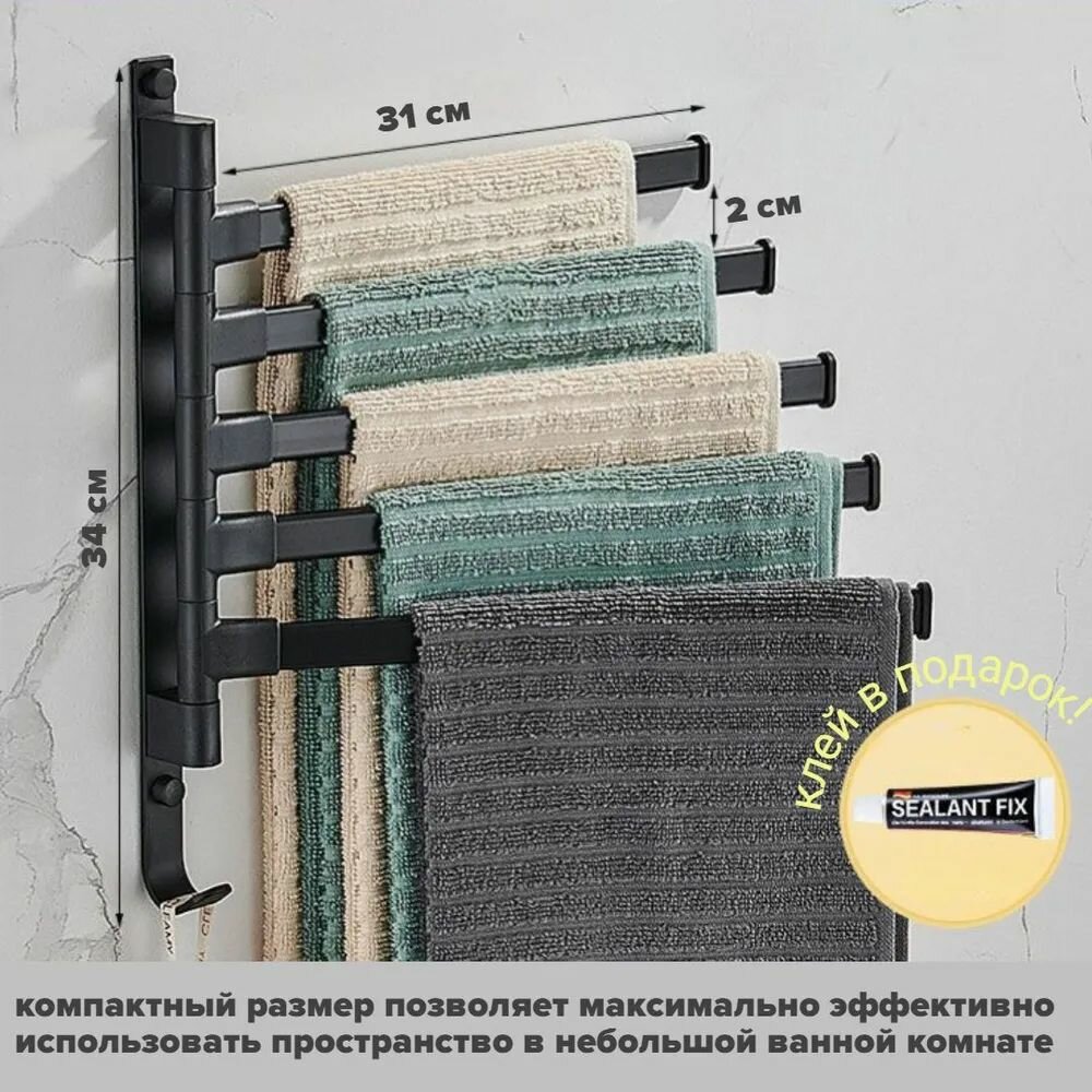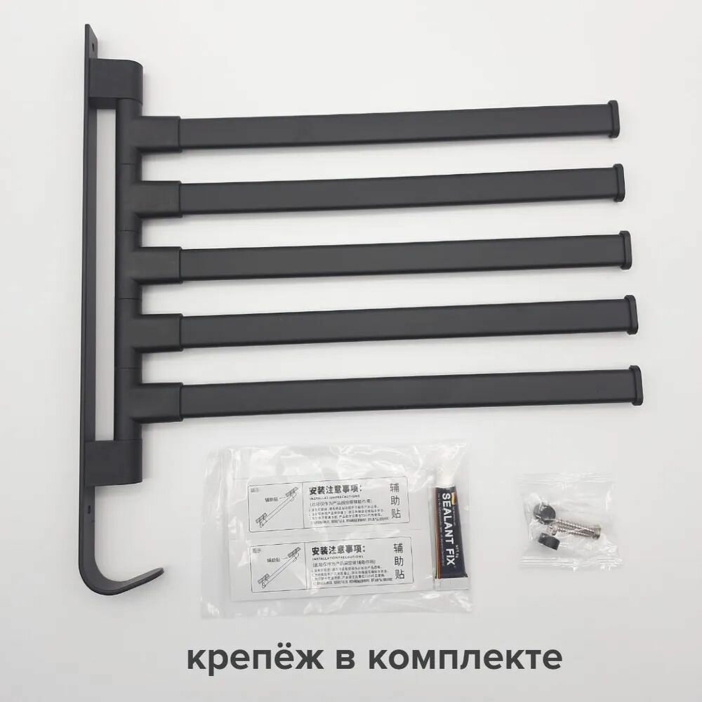 Держатель для полотенец в ванную 5 уровней / вешалка для полотенец поворотная черная интересное: