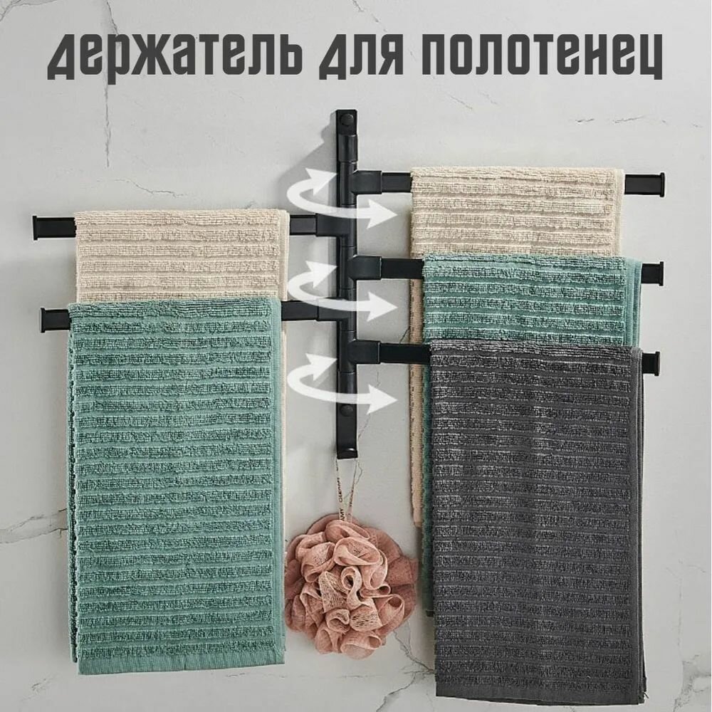 Держатель для полотенец в ванную 3 уровня / вешалка для полотенец поворотная черная