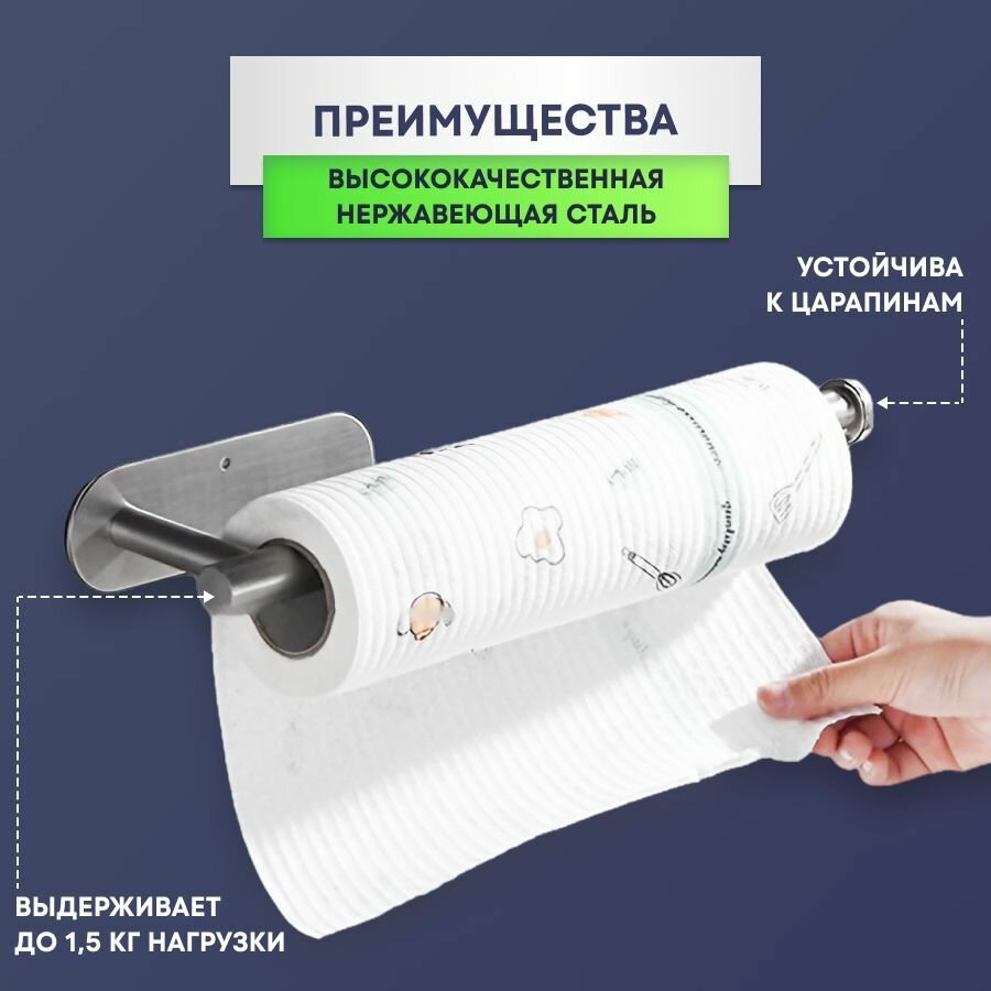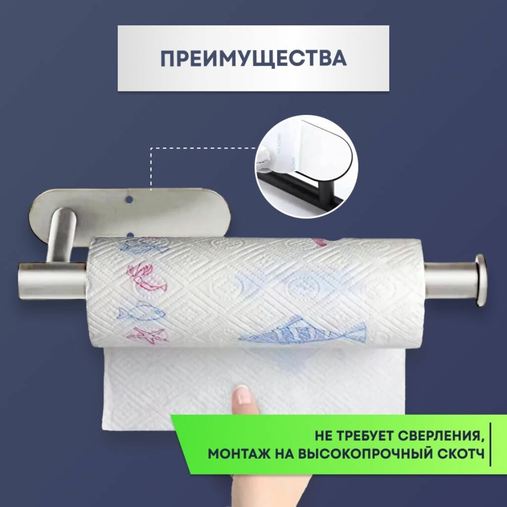 Держатель для бумажных полотенец, фольги и пленки на кухню, самоклеящийся, настенный, металлический , серебристый интересное: