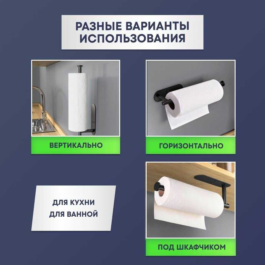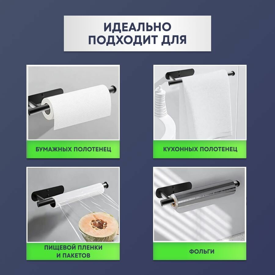 Держатель для бумажных полотенец, фольги и пленки на кухню, самоклеящийся, настенный, металлический , черный