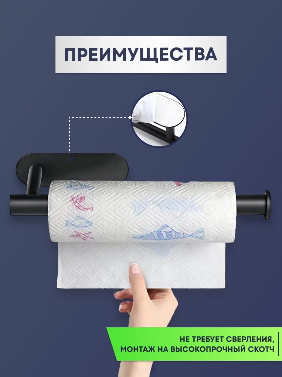 Держатель для бумажных полотенец, фольги и пленки на кухню, самоклеящийся, настенный, металлический , черный интересное: