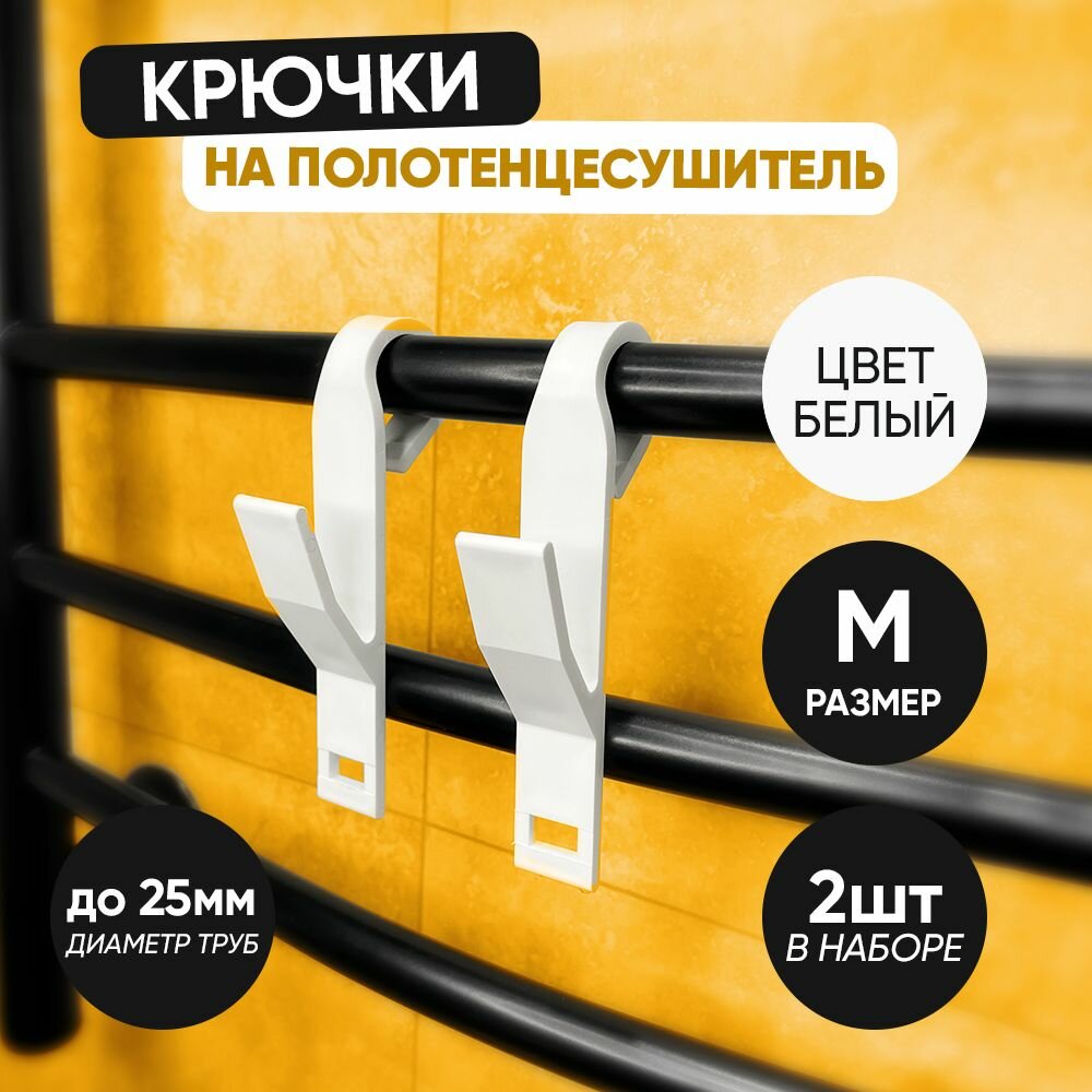 Крючки для ванной 2 шт. белые малые для труб диаметром до 2,5 см на полотенцесушитель пластиковый интересное: