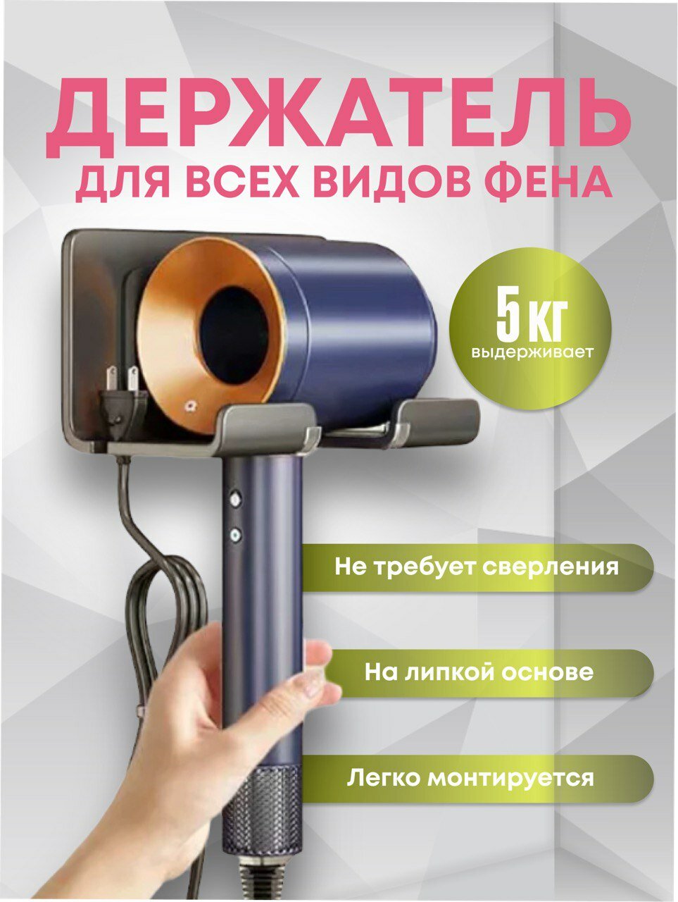 | Комплектация | Клейкая лента; 1 держатель для фена |