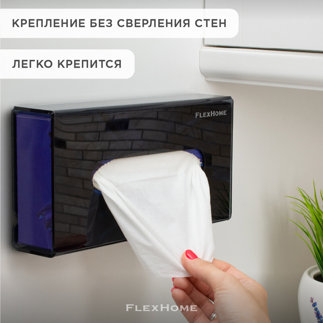 Держатель для бумажных полотенец диспенсер салфеток настенный контейнер салфетница для ванной кухни FlexHome Черный интересное:
