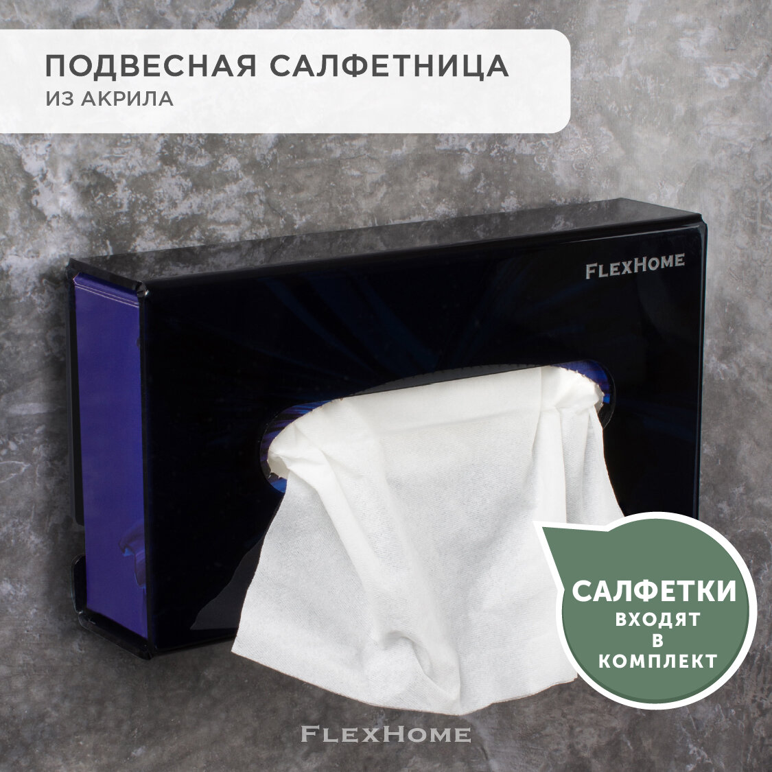 Держатель для бумажных полотенец диспенсер салфеток настенный контейнер салфетница для ванной кухни FlexHome прозрачный акрил
