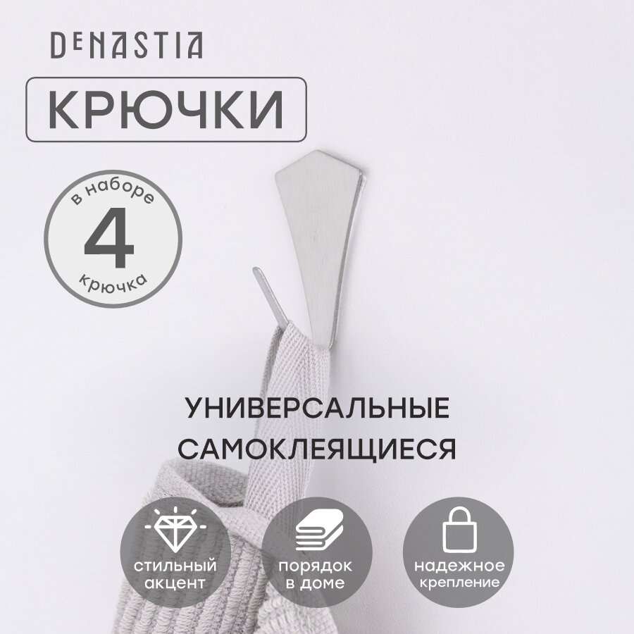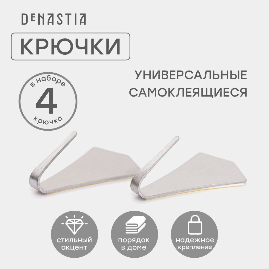 Набор крючков на липучке DeNASTIA 4 шт., 3х4см, нержавеющая сталь, цвет серый, A000093 интересное: