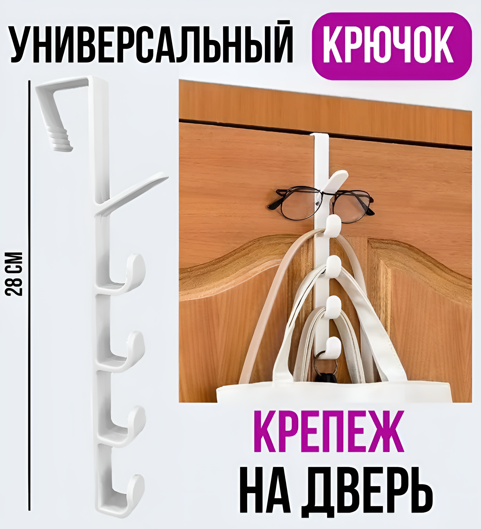 Надверная вешалка крючок для полотенец аксессуаров навесной на кухню и в ванную комнату или шкаф белый 1 шт интересное: