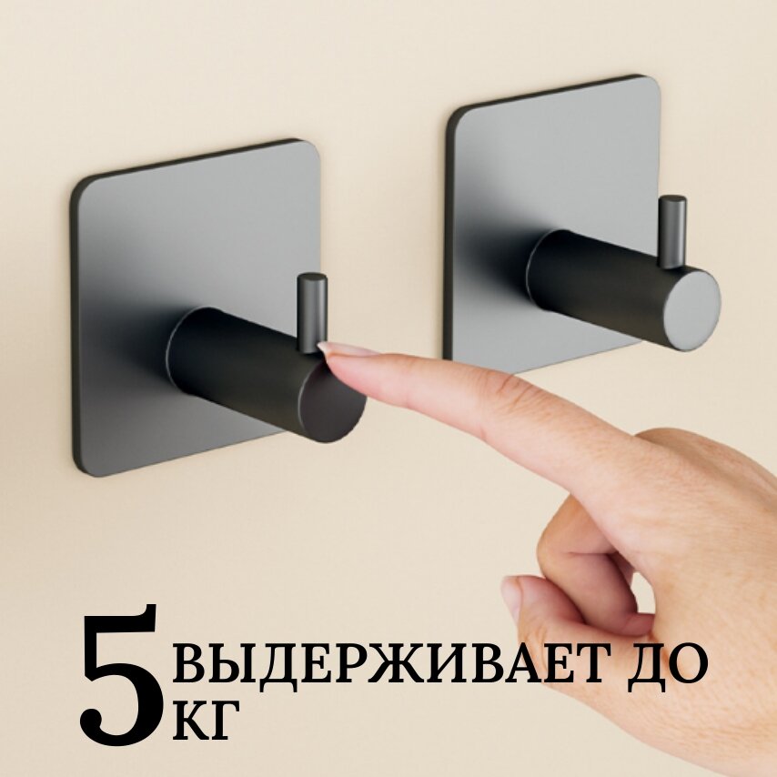 Крючки AlexMatt для ванной, 5шт, черные, клей-герметик в комплекте.