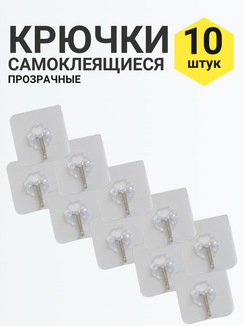 Крючки настенные самоклеящиеся без сверления 10 штук