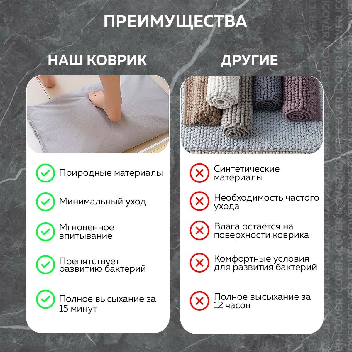 СохранитьКоврик для ванной и туалета с Диатомитом Ridberg Diatomite 35*53 см, серый / влаговпитывающий, быстросохнущий, противоскользящий, прикроватный коврик, черный интересное: