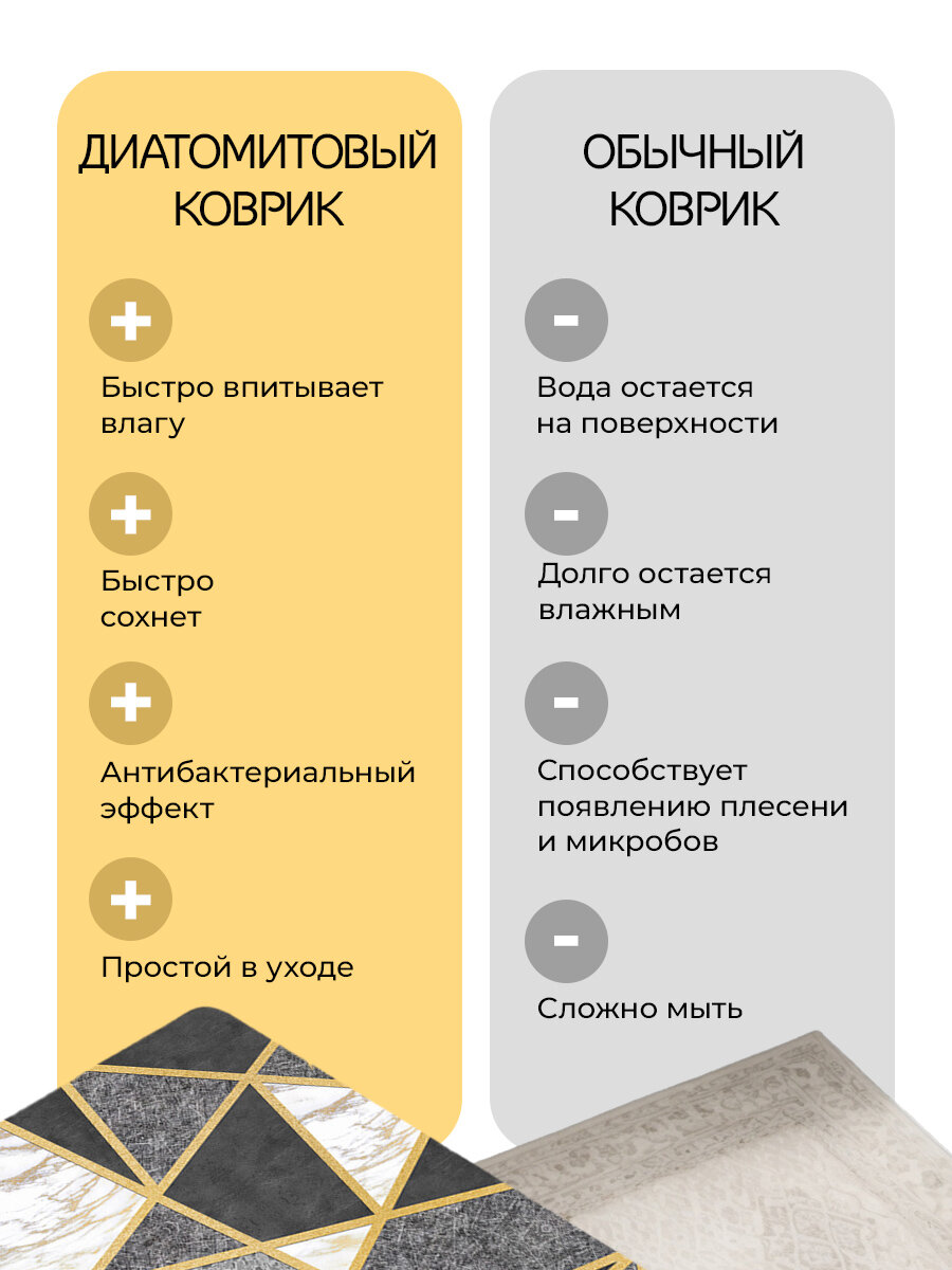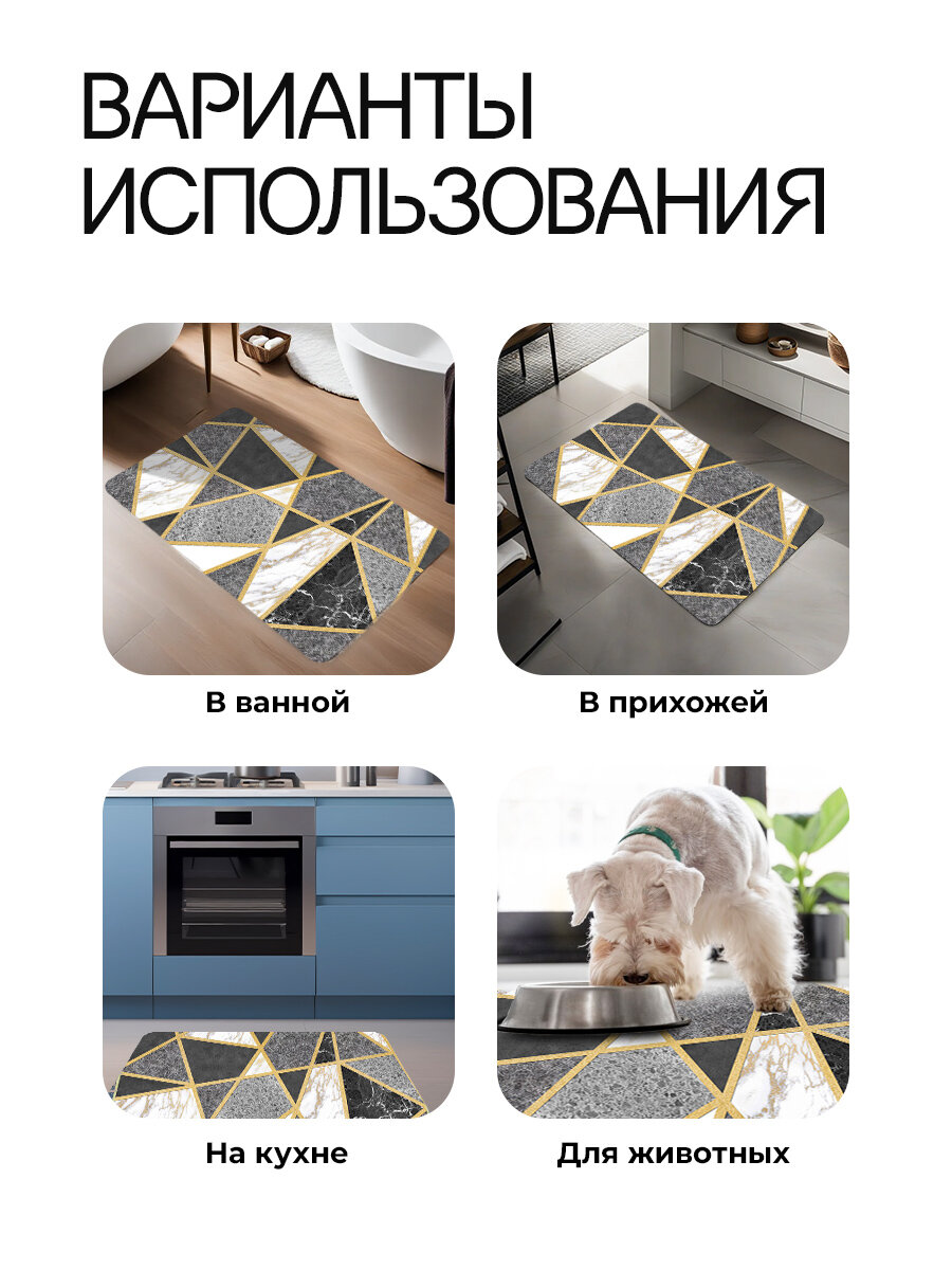 Диатомитовый коврик для ванной Conflate, антискользящий 50*80, черно-белый мрамор с золотом