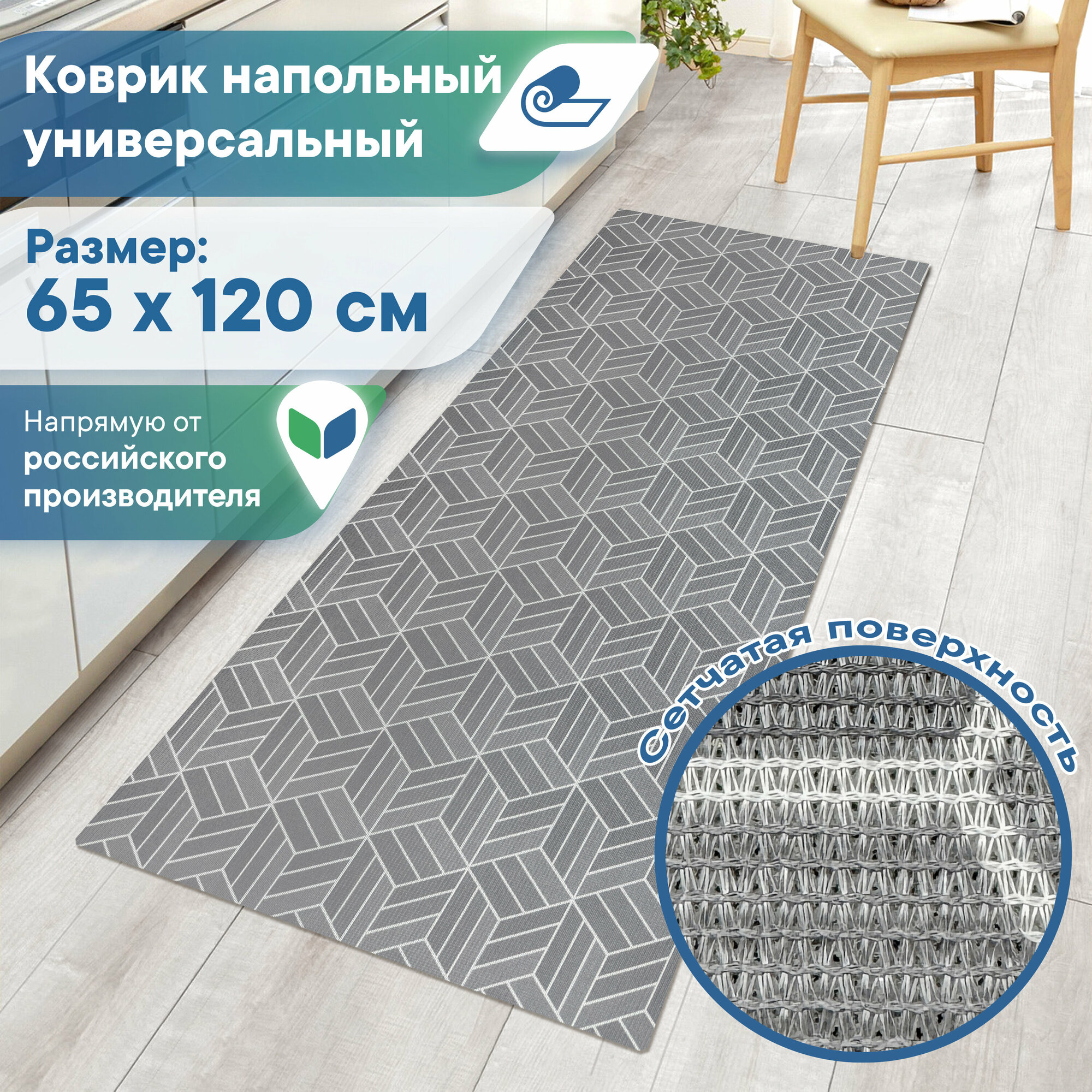Купить Коврик для ванной для туалета в комнату безворсовый мягкий напольный VILINA противоскользящий 65х120 см "Элемент" серый