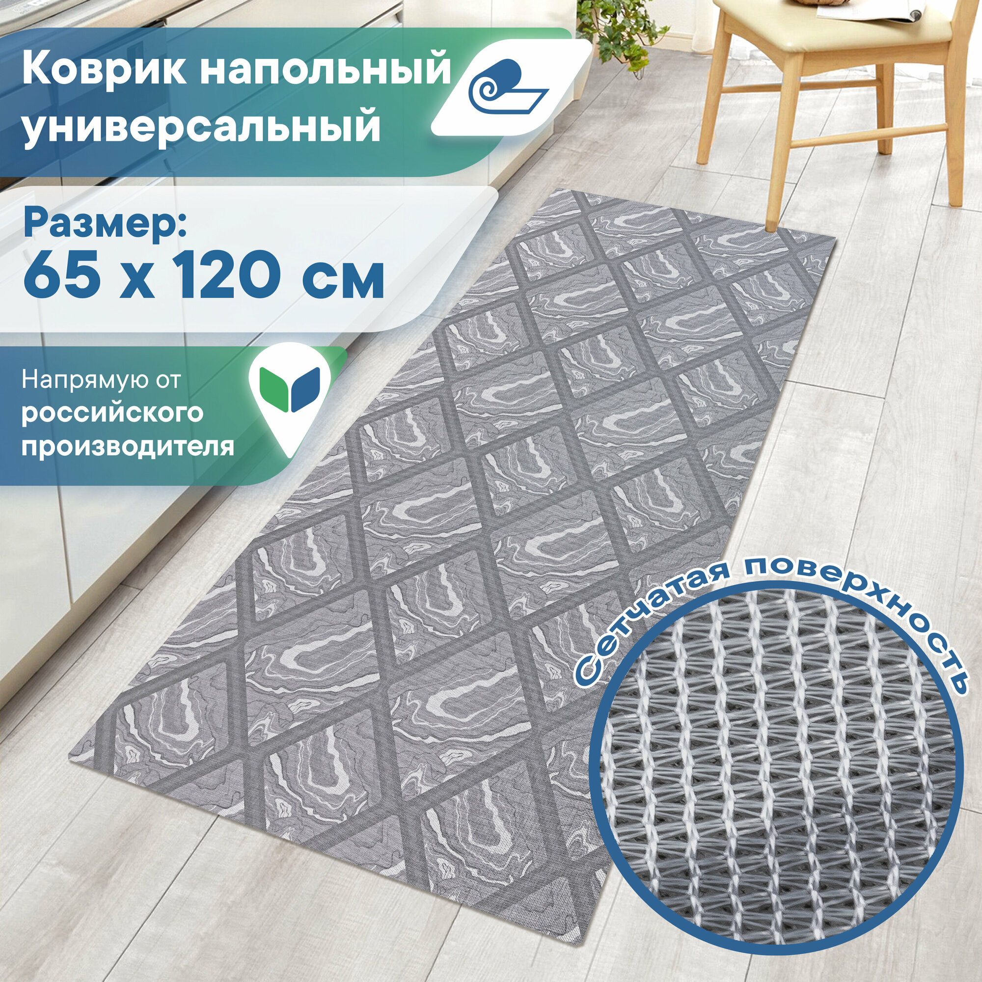 Купить Коврик напольный противоскользящий VILINA мягкий безворсовый для ванной для туалета в комнату 65х120 см "Элемент" серый