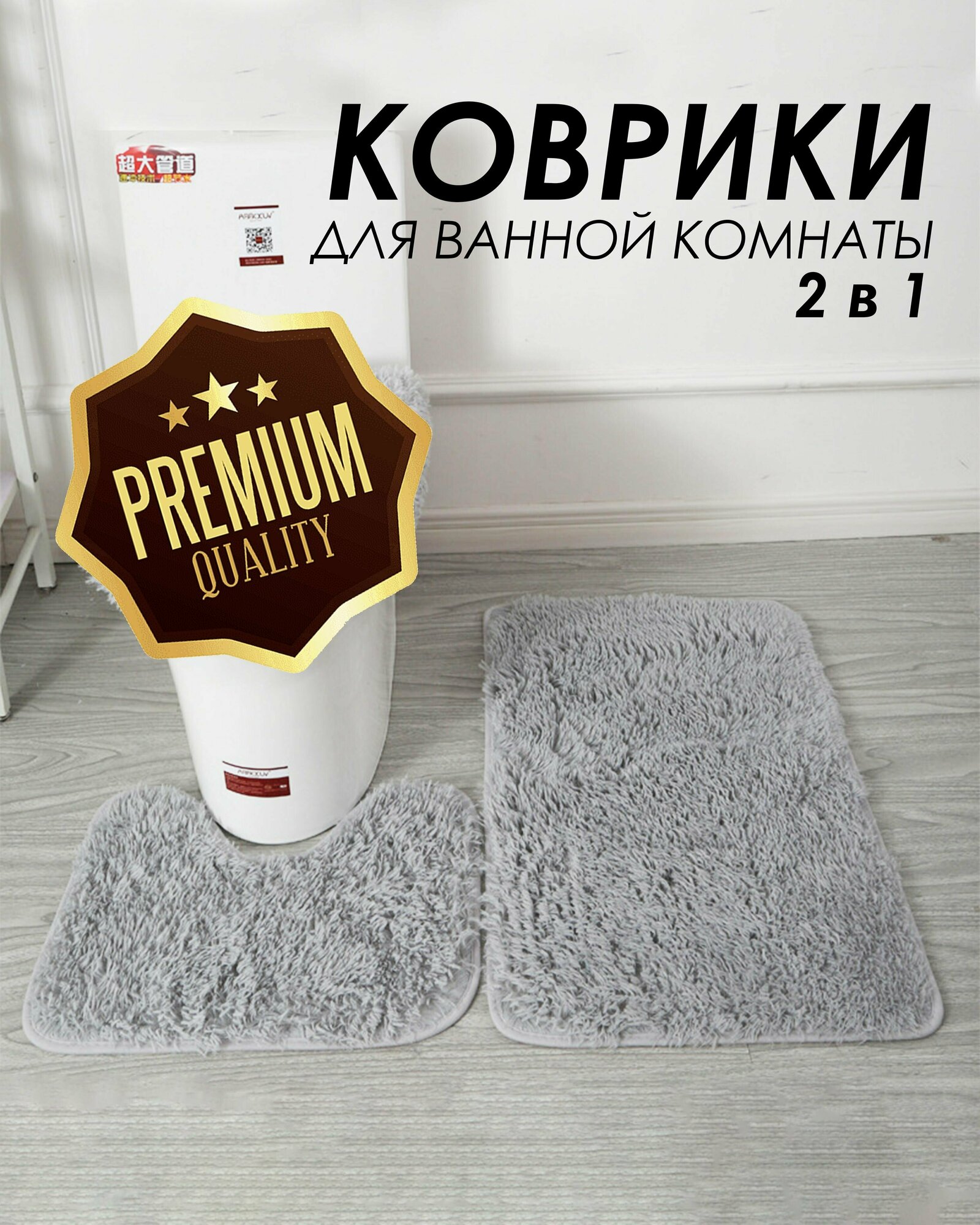 Коврики для ванной и туалета комплект из 2 штук (Серый) интересное: