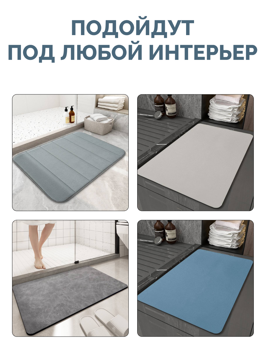 Коврик для ванной с эффектом запоминания, светло-серый, 80х50 см