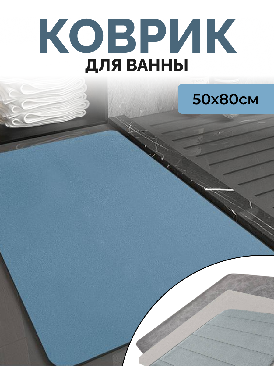 Антискользящий коврик для ванной, 80х50 см, голубой интересное: