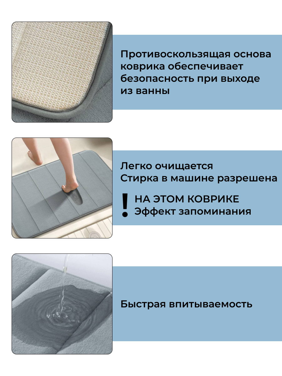 Коврик для ванной с эффектом запоминания, светло-серый, 80х50 см интересное: