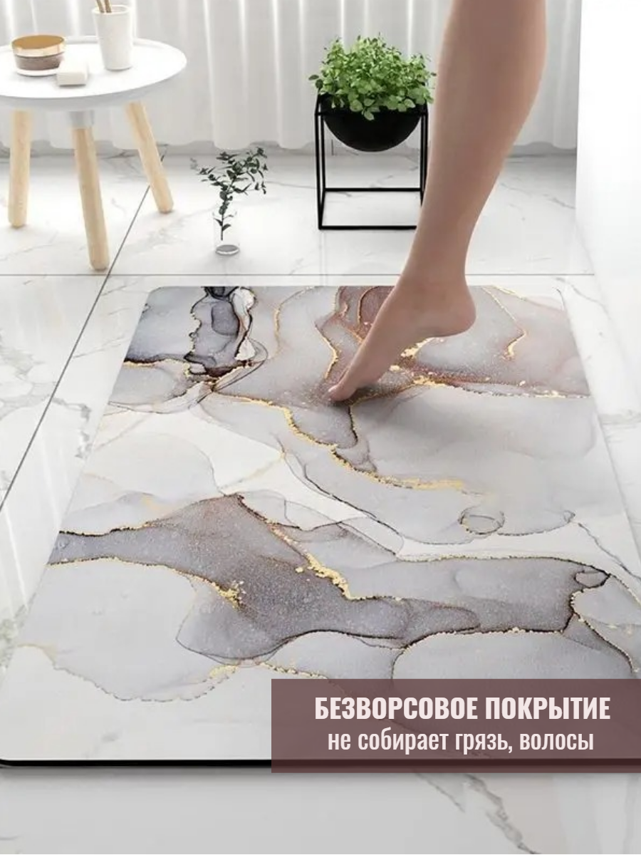 Коврик для ванной быстросохнущий 50*80, универсальный коврик для дома, серый мрамор.