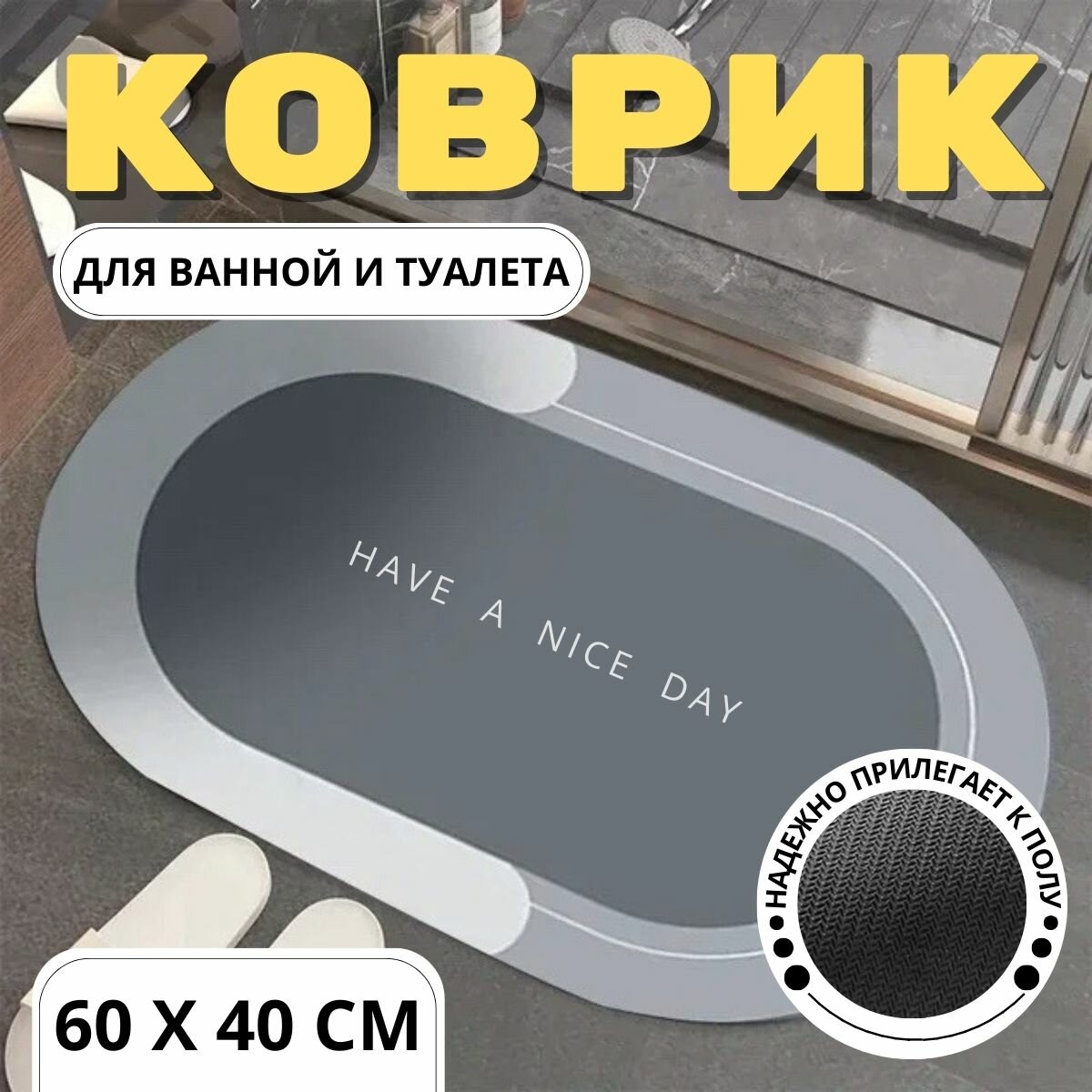 Коврик для ванной комнаты и туалета нескользящий, влаговпитывающий, серый, быстросохнущий, противоскользящий, овальный коврик,40x60см. интересное: