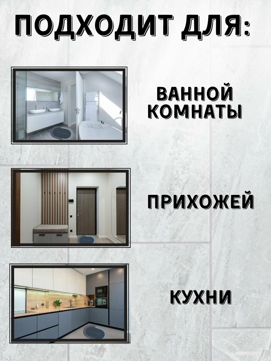 Коврик для ванной 60x100см, быстросохнущий, нескользящий, серый мрамор