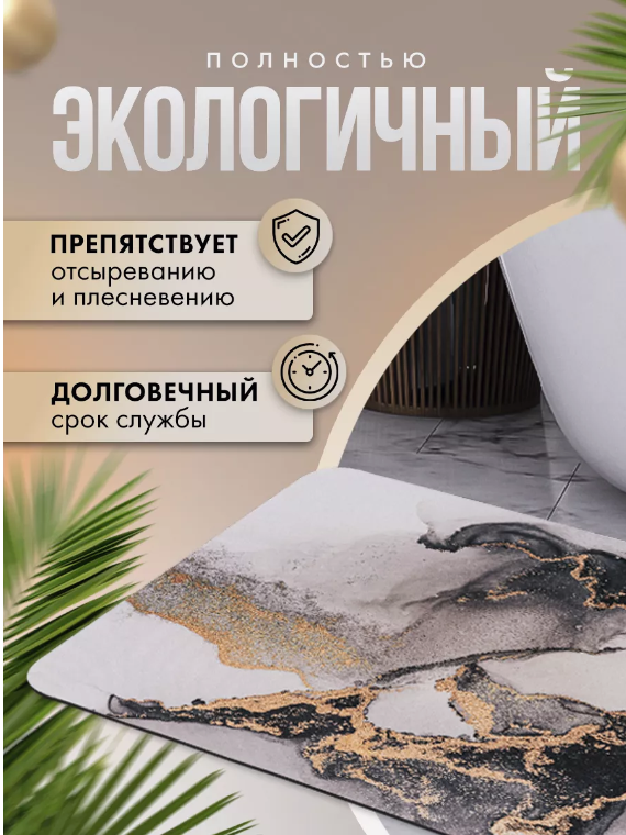 СохранитьКоврик для ванной комнаты и туалета противоскользящий, быстросохнущий 50*80см, черно-белый мрамор интересное: