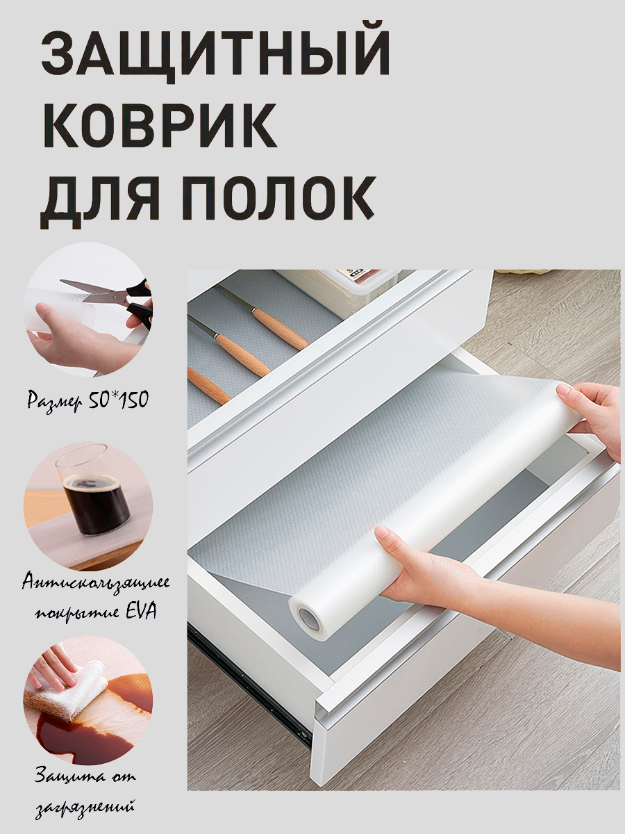 Коврик в холодильник для полок, кухонных ящиков еVA 150х50 см, белый интересное: