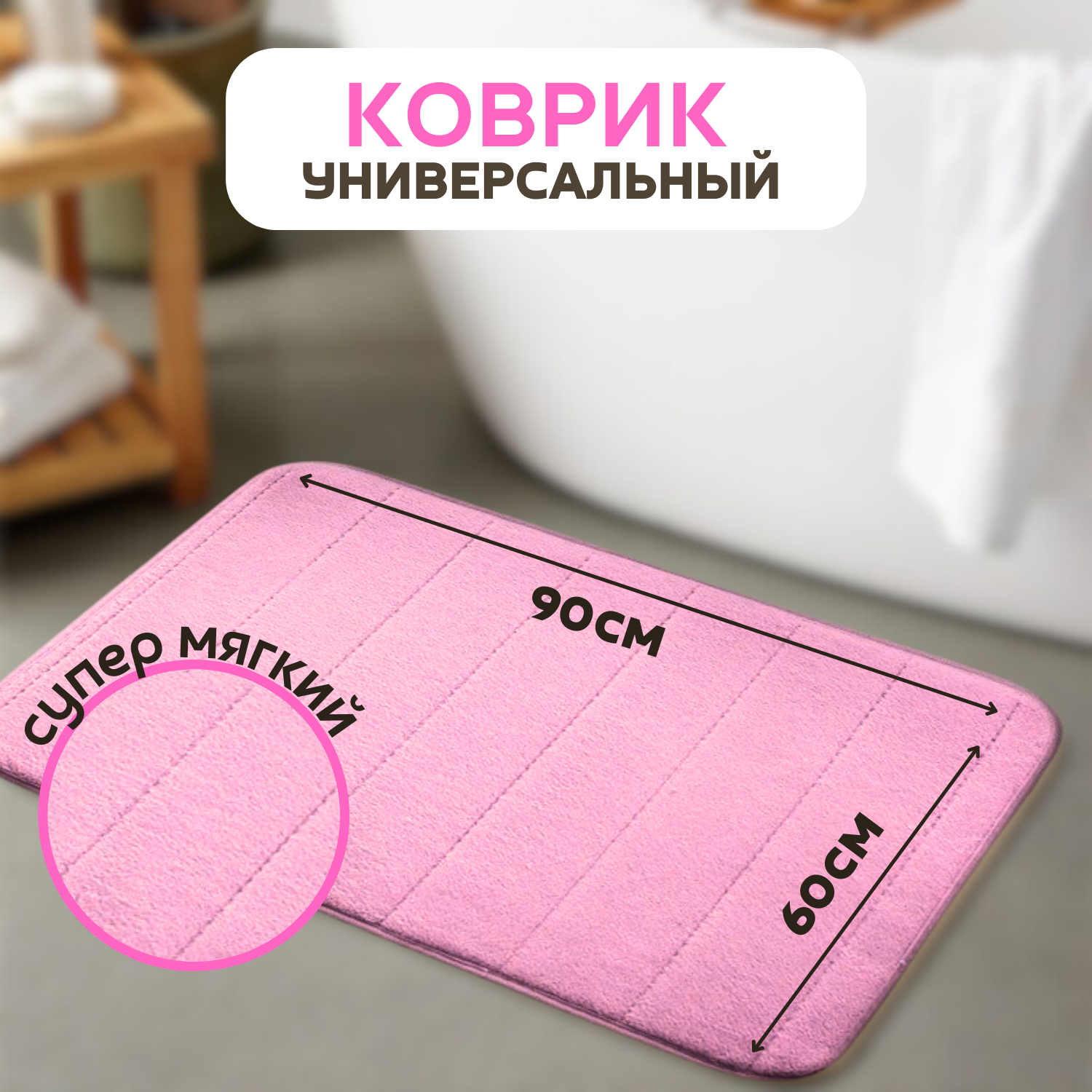 Купить Коврик мягкий для ванной и туалета розовый 90 х 60 см
