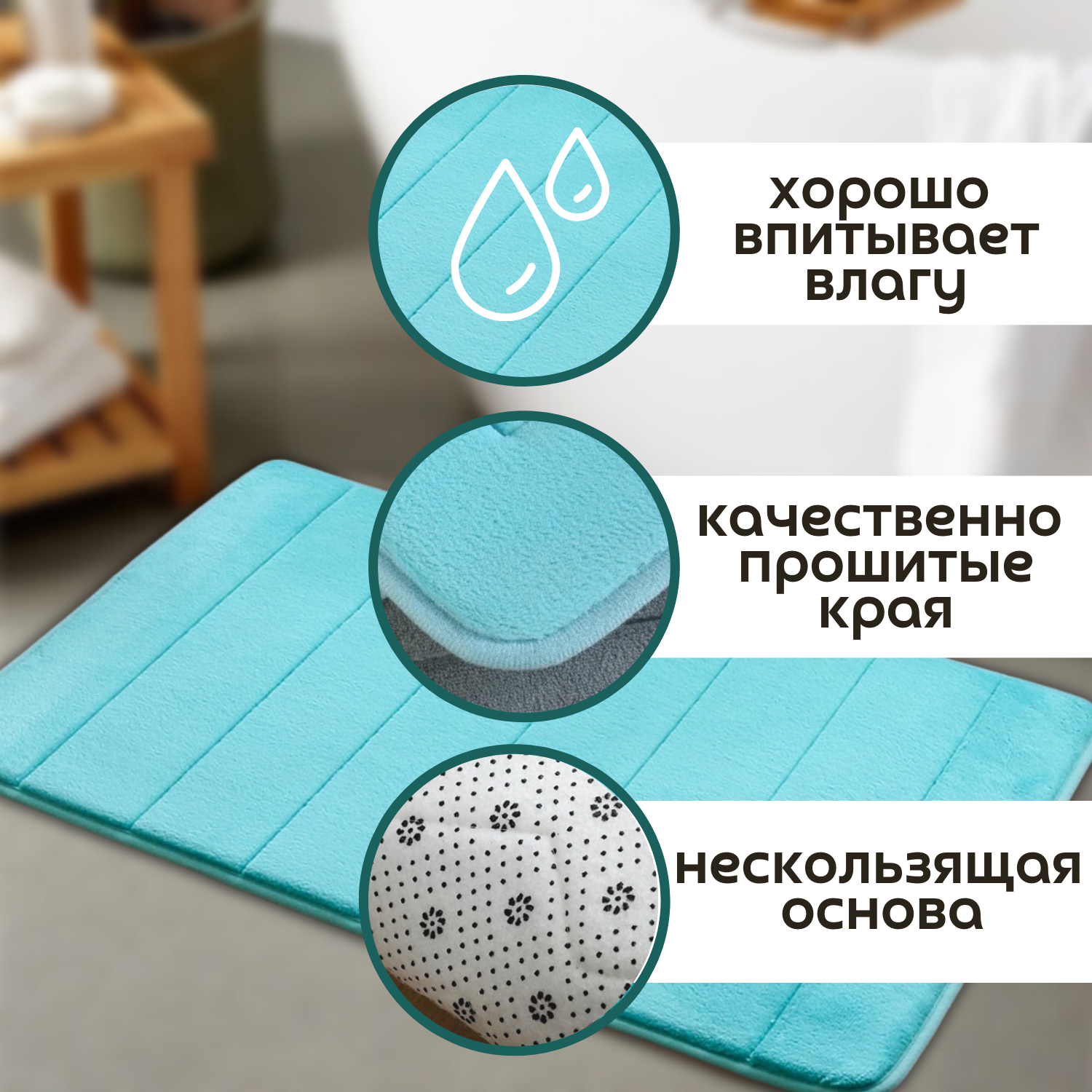 СохранитьКоврик мягкий для ванной и туалета бирюзовый 90 х 60 см интересное: